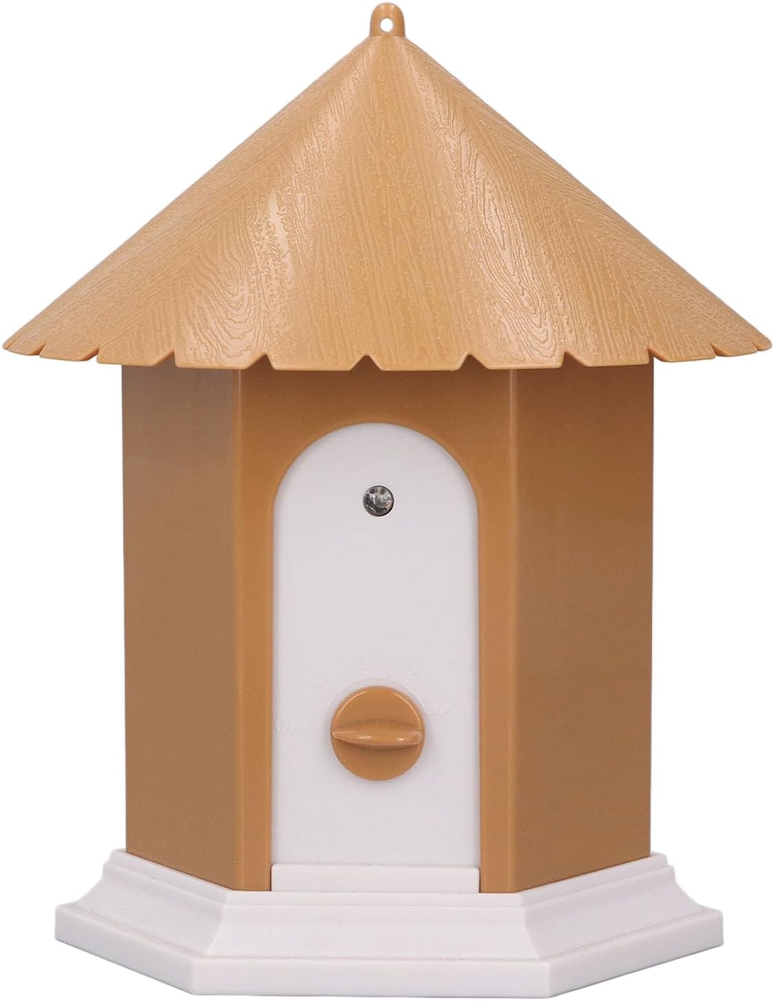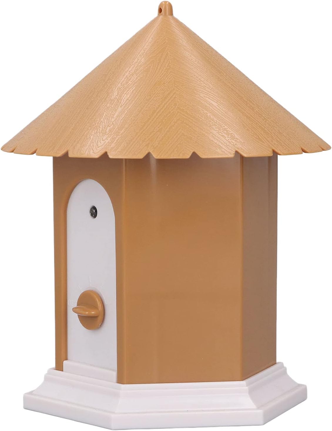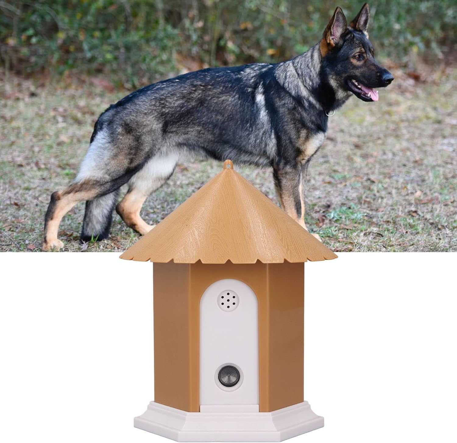 [LOVELY DESIGN] LIGHTWEIGHT AND ATTRACTIVE BARK CONTROL: Ideal for outdoor use with a charming design, not ideal for indoor settings.[SAFE AND ADJUSTABLE] EFFECTIVE BARK DETERRENT: Suitable for all dog sizes, emits a harmless yet powerful sound to control excessive barking.[POWERFUL FUNCTIONALITY] NO MORE EXCESSIVE BARKING: Efficiently catches barking in the covered area, effectively addressing noisy barking problems.[EASY TO INSTALL] CONVENIENT HANGING SOLUTION: Includes a lanyard for hassle-Less setup on trees, walls, or fence posts, providing peace and quiet for your home and travels.[WEATHERPROOF] Longlasting AND : Made of premium ABS material, can withstand various weather conditions, ensuring long-lasting performance.Spec:Item Type: Bark Control DeviceMaterial: ABSBattery Type: 1 x BatteryBattery Model: 9V Battery (ppp3 Battery) (Shipped without Battery)Package List:1 x Bark Control Device (Battery Not Included)1 x Lanyard1 x ManualNote: