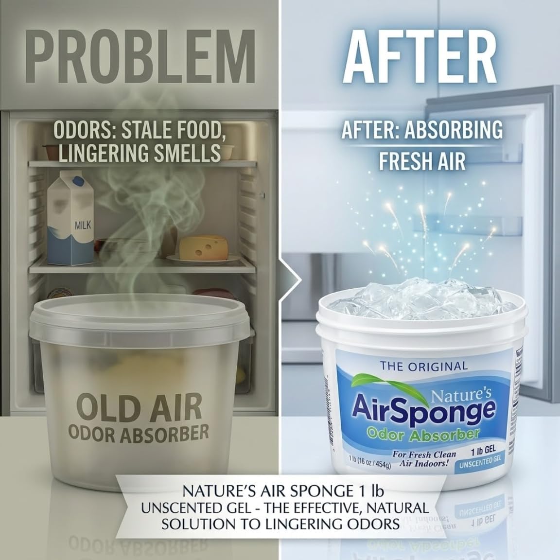 Nature's Air Sponge No Scent Odor Absorber 1 lb gel is a no-scent product intended for routine odor control in homes and small indoor spaces. This gel Air Freshener is designed as an Odor Absorber for rooms where a strong added fragrance is not desired. The gel sits exposed in its tub and gradually evaporates during use. As it does, it works as a Room Deodorizer and can complement other Room Air Fresheners or a Bathroom Air Freshener. The neutral, no-scent profile helps maintain a simple Room Scent rather than overlaying strong perfume. In everyday use, place the container on a stable surface in living rooms, hallways, or near litter box areas as a Pet Odor Eliminator for Home. It can also be set in offices, entryways, or bathrooms to function as an Air Freshener where air circulation is limited and ongoing odor control is desired. This pack includes three 1 lb containers of Nature's Air Sponge No Scent Odor Absorber gel. The multipack format suits multi-room setups or regular replacement schedules in home or work environments. Packaging may vary.