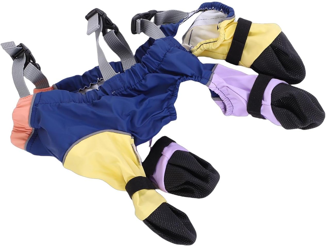 [Waterproof Performance]Keeps your dog's paws dry during rainy walks and outdoor adventures with a waterproof design. [Non-Slip Safety]Equipped with non-slip soles for enhanced traction on various surfaces, ensuring secure footing. [Comfortable Fit]Elastic material provides a snug yet comfortable fit, ideal for small breed dogs enjoying long hikes. [Durable Protection]Protects against snow, mud, and abrasive surfaces, making outdoor activities more enjoyable. [Size Guidance]Available in various sizes; please measure carefully to select the best size for your furry friend. Item Type: Dog Suspender Booties Function: Waterproofing, Anti Slip, Abrasion Proof Material: PU 1 x Dog Suspender Booties The size is relatively small. If your dog legs are long or your weight is heavy, it is recommended to buy one size larger. Be sure to measure the size of the puppy to ensure safety and comfort.
