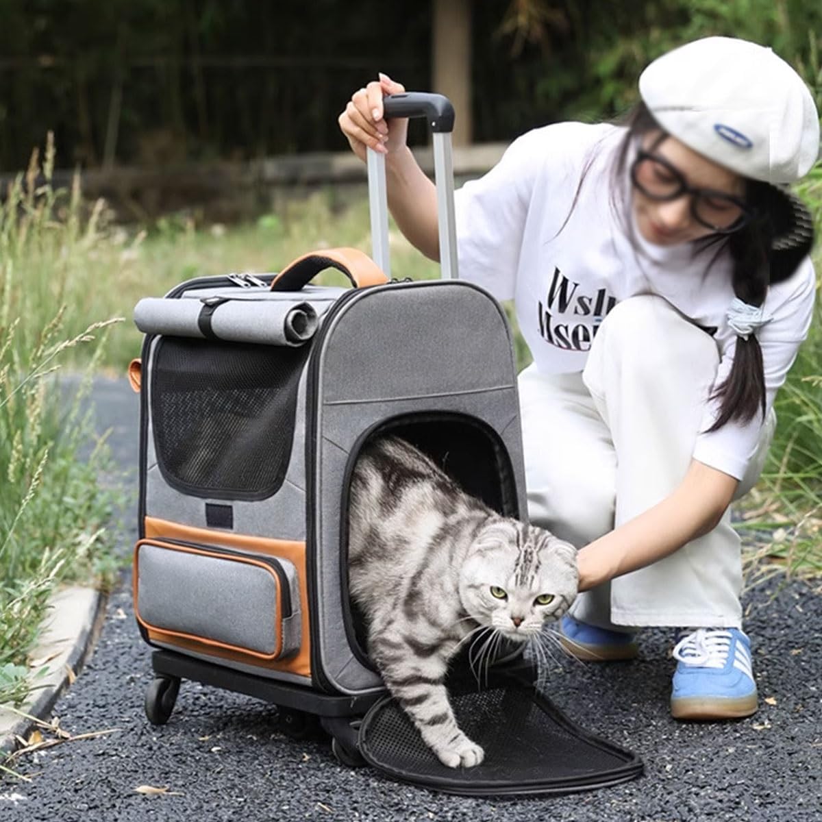 Color: Gray,BeigeName: Pet Trolley CaseMaterial: Oxford clothWeight: 2.3KGSize: 35*51*31(cm)