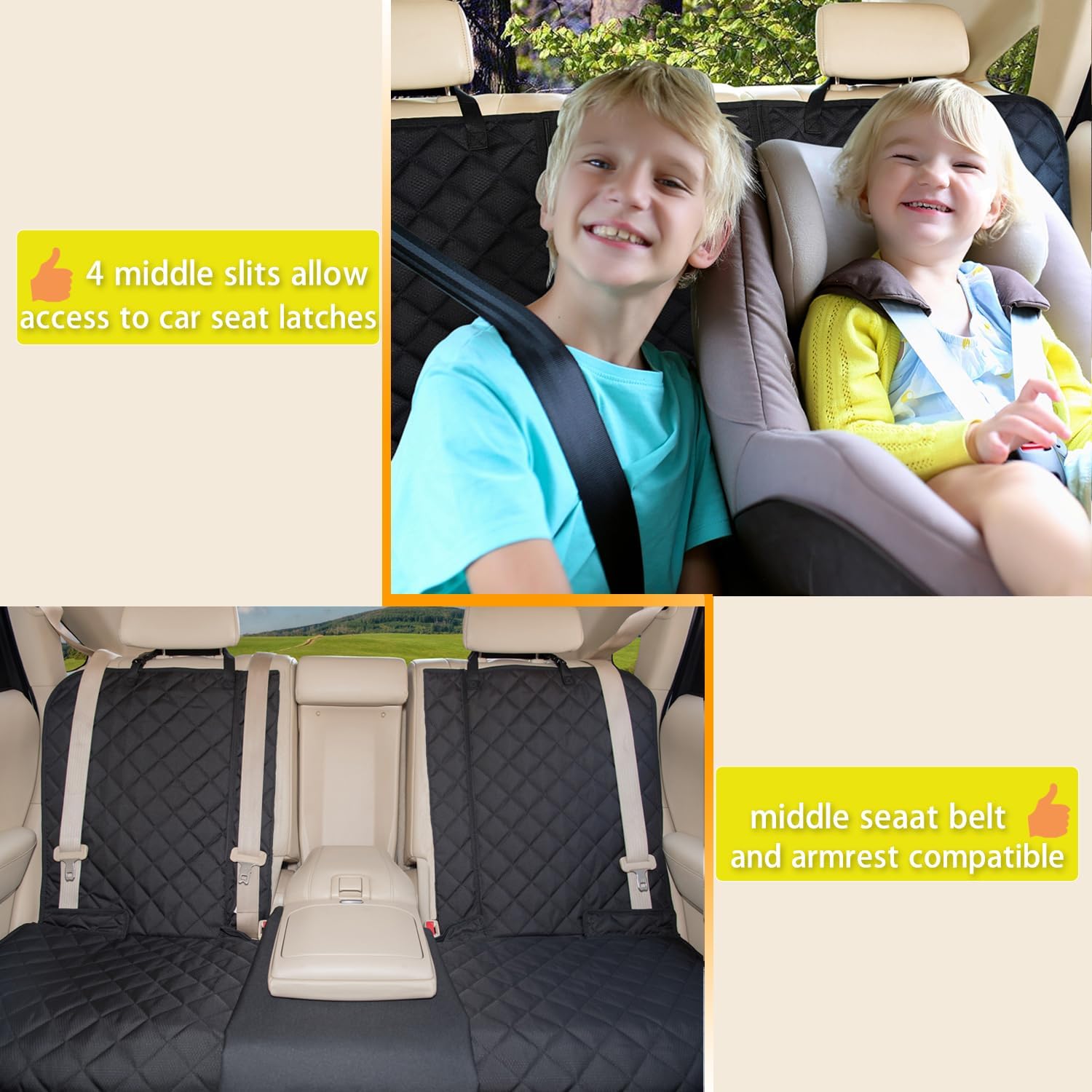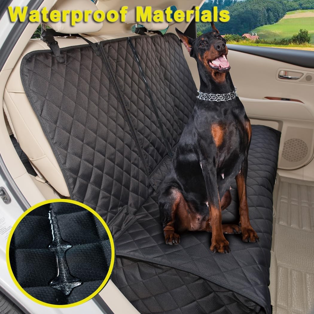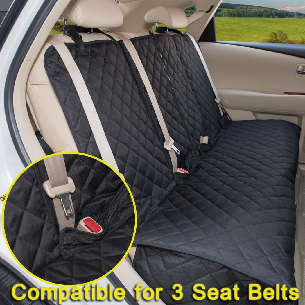 Keep Your Car Showroom-Fresh, No Matter What Life Throws Its WayTired of worrying about muddy paws, spilled juice, or worn-out seats? Our Heavy-Duty Backseat Protector for Dogs is a solution for a tidy car interior. Designed for busy families, pet owners, and adventurers, it delivers full protection without compromising on convenience or style. Reclaim your peace of mind and turn your car into a pleasant ride.AN UNIVERSAL DESIGN car seat cover for dogs that forms a seamless, tailored shield over the entire backseat of most sedans, SUVs, and trucks. You get a secure, neat look that stays in place, providing complete coverage exactly where you need it.Accidents happen, but cleaning your car seats shouldn't be a chore.Our solution: Made from a high-density materials that acts as a dependable barrier. The back seat pet cover blocks and contains mud, dirt, pet fur, food crumbs and liquid spills. A sliding, bunching car seat cover is distracting and unsafe.Our solution: The secret is in the non-slip backing and reinforced anchor straps. They work together to lock the back seat cover firmly in position, preventing any movement. The added cushioning provides a more comfortable and secure ride for all your passengers.You shouldn't have to choose between protection and functionality.Our solution: We designed for real-life use. Strategically placed, easy-access openings allow you to use your vehicle's seat belts, LATCH systems for child seats, and built-in cup holders or armrests without removing the car dog cover. Safety and convenience.Cleaning a car seat protector should be simple and fast.Our solution: We’ve eliminated the hassle. Installation takes under a minute with our intuitive strap system. When adventure leaves its mark, simply shake off dirt, wipe it clean with a damp cloth, or toss it in the washing machine for a quick refresh. It’s always ready for your next trip.