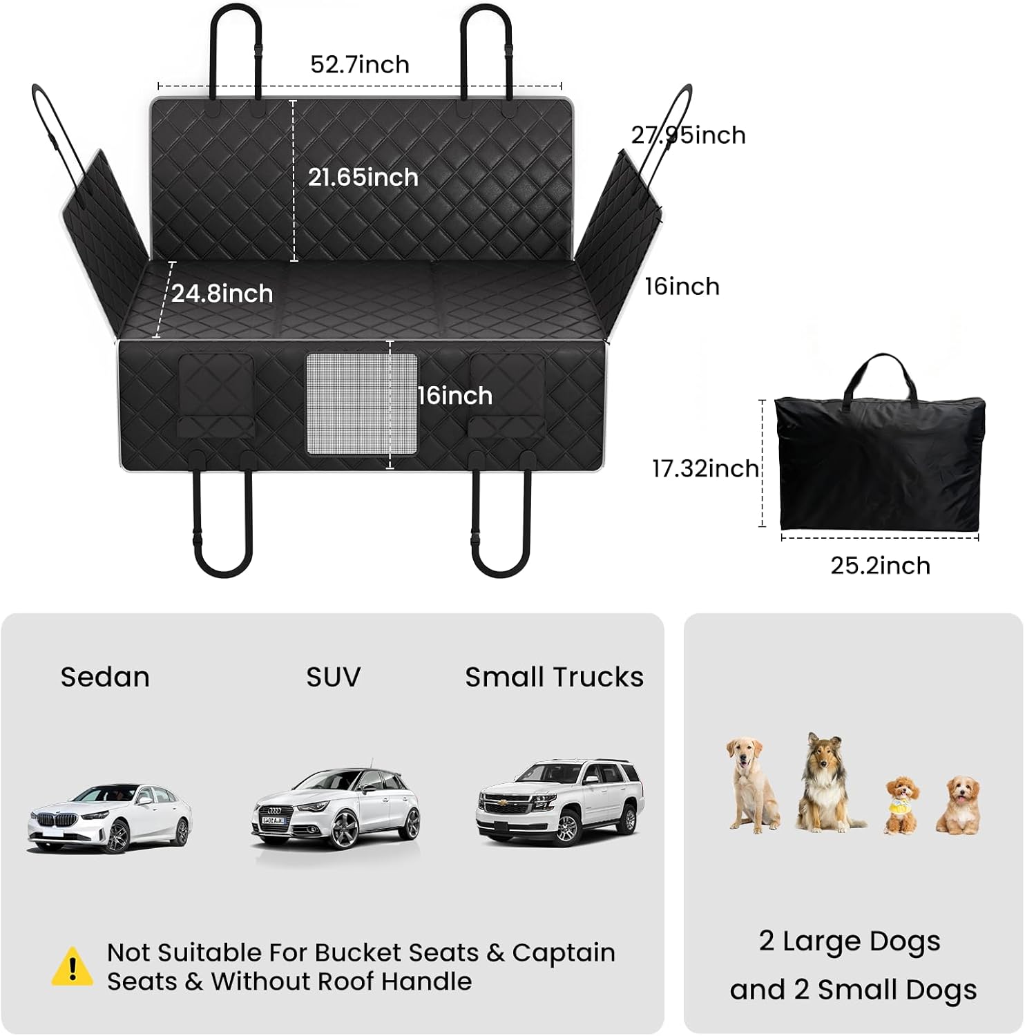 | Special Features | 500 lbs Load-bearing Hard Bottom, 45% Extended Space, 2 Large Dogs, Waterproof, Easy to Clean, Anti-slip |
