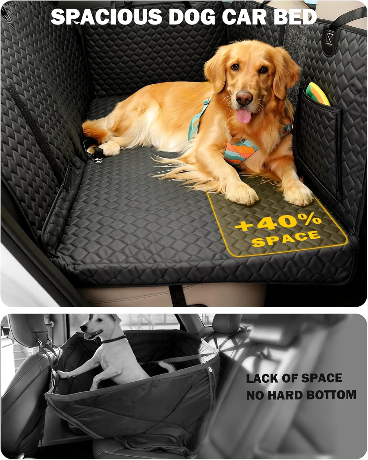 Pawccoli dog backseat extender mat is specially designed for pet travel. It adopts an innovative rigid bottom structure with only three reinforced PP support plates, which is not only stable, but also expands the rear seating space by 40% and supports up to 420 pounds. Waterproof, wear-resistant and easy to clean, this mat can effectively prevent pet hair, liquids and scratches from damaging the original car seats and doors. Easy to install, it is widely compatible with various sedans, SUVs and pickup trucks, making it an ideal choice for protecting your car and providing a comfortable mobile space for your dog.