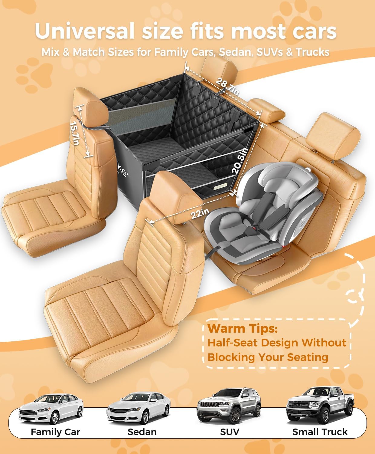 | Included Components | 1 Adjustable Secure Safety Straps【Zinc Alloy+Nylon Straps】, 1 Blanket【Soft & Easy to clean】, 1 Installation Manual + 1 Brand Card, 1 Military-Grade Reinforced Pet Car Seat, 2 Male Tubes + 2 Female Tubes【Sturdy & durable】 |
