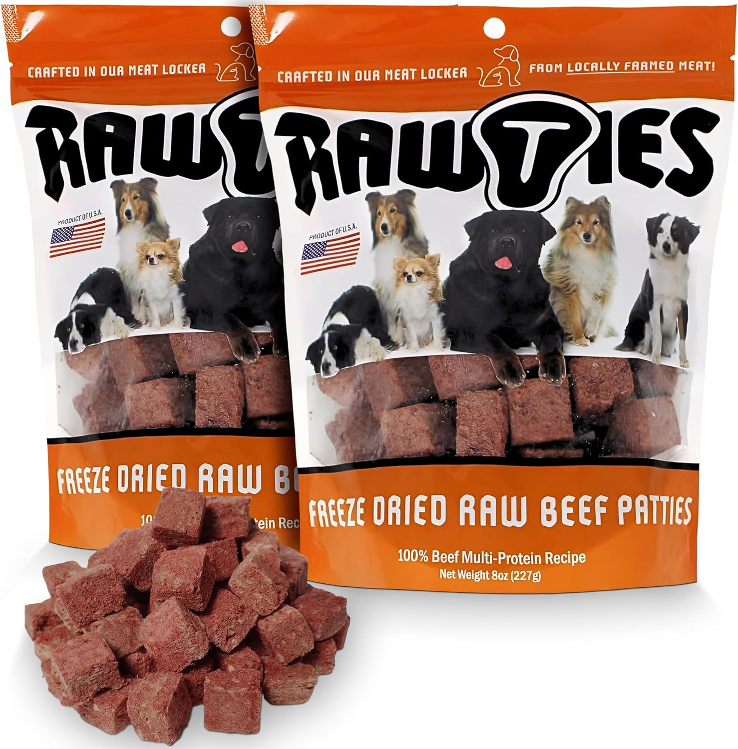 RAWTIES Premium Freeze-Dried 4 Variety Pack - Beef Liver, Heart, Patties and Liver for Dogs – 100% USA-Sourced Raw Meat Dog Food – Grain-Free, High Protein Nutrition for Small & Large Breeds100% RAW, PURE AND NATURALLY HEALTHY: Give your dog the purest nutrition possible — 100% raw beef and with no additional ingredients. For ingredient-aware pet owners looking for healthy dog food alternatives, choose the simpler, cleaner, and naturally healthier option. Let them go RAW with Rawties!LOCALLY SOURCED & FAMILY MADE: We have been in the business for 15 years, with all of our beef products crafted in our meat locker in Iowa, USA, sourcing our meat from local farmers. As a family-owned business, we are involved in every step of production from start to finish. We treat our own dogs like family and work hard to ensure the best quality for dogs everywhere.FREEZE-DRIED FOR FRESHNESS & QUALITY: Freeze-drying our dog food allows us to use natural, 100% beef in all our products without any preservatives. In fact, freeze-dried food is so shelf-stable that it can last for years before it is opened! We promise it won’t last nearly that long when your dog gets a taste.THE NATURAL CHOICE FOR NUTRIENT ABSORPTION: Give your dog the nutrition nature intended. A raw diet allows pets to absorb nutrients directly from real, whole foods—not synthetic additives found in kibble or canned food. Our protein-rich, low-carb recipes support healthy digestion and help your dog look and feel their best.A LITTLE GOES A LONG WAY: We understand dog food can be expensive, and we want to offer our quality raw beef to everyone. Even if you cannot feed your dog raw daily, introducing it into your dog's diet a couple of days a week or as meal toppers will provide many of the same benefits!