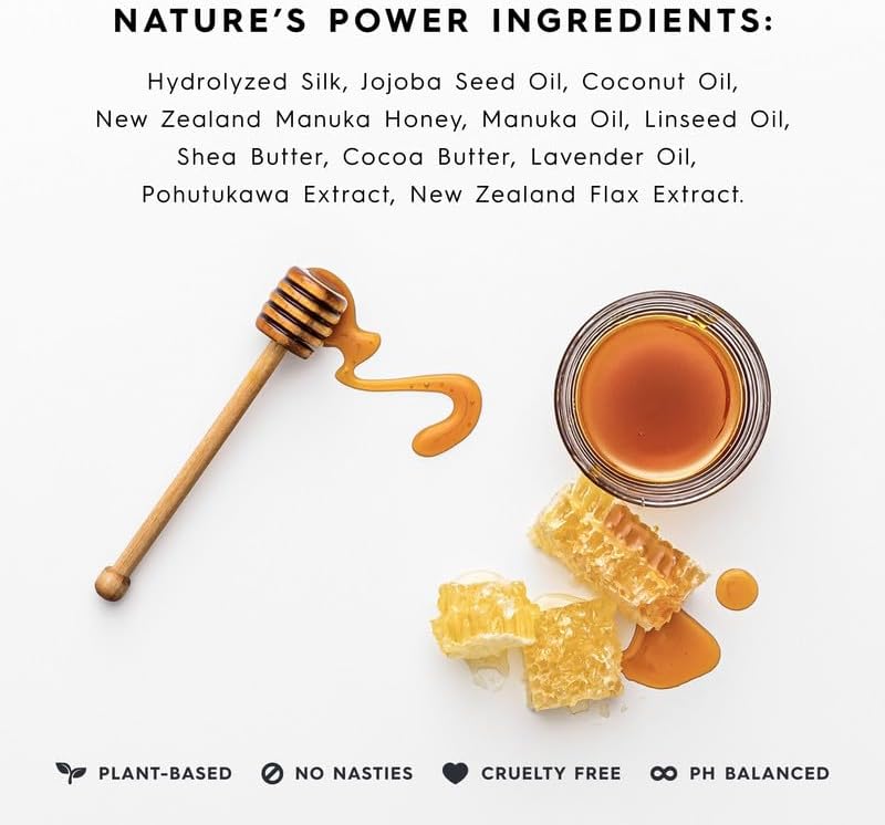 | Special Ingredients | Hydrolyzed Silk Protein, Jojoba, Manuka Honey, Flax, Pohutakawa |