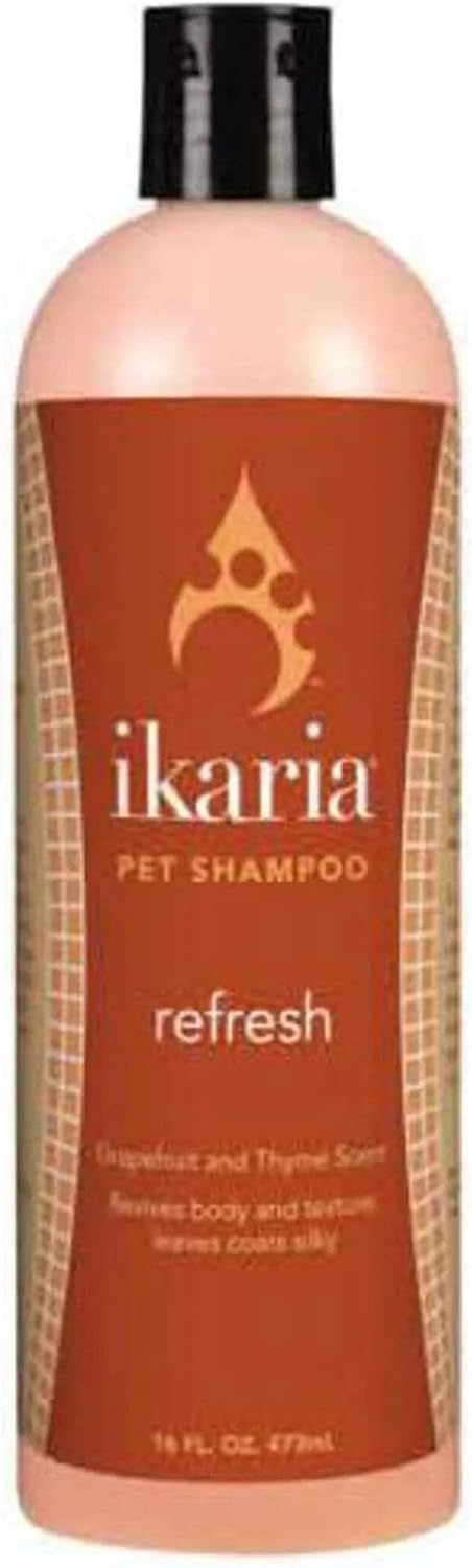 Our popular ikaria Pet Grooming Shampoos have been reformulated with richer and more luxurious ingredients to pamper pets. These spa inspired grooming shampoos are made with natural botanicals for a rich, restorative cleaning experience.• Refresh Shampoo is our signature everyday formula that leaves a long-lasting grapefruit thyme scent. • Retreat Shampoo is a tearless and hypoallergenic formula with calming soft rose and sweet milk proteins • Comfort Oatmeal Shampoo has soothing ingredients that comfort and calm, dry itchy skin • Renew Shampoo helps neutralize naturally occurring pet odors • Enlighten Shampoo naturally whitens, brightens, and conditions light-colored coatsSafe for puppies and kittens over 8 weeks old. ikaria Pet Grooming Shampoos dilute up to 8:1 and are available in 16 oz. and Gallon sizes.