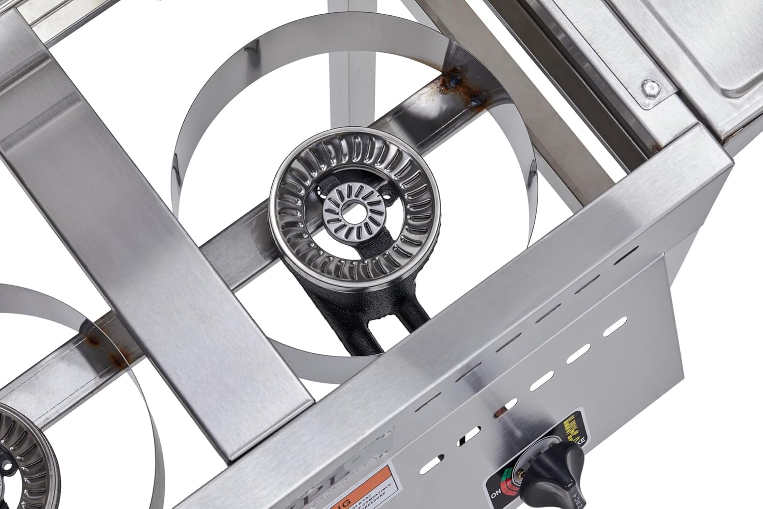 Upgrade your outdoor cooking setup with this versatile professional-style Two-Tank Propane Deep Fryer, perfect for food trucks, catering services, and backyard feasts. Crafted from durable stainless steel, this heavy duty deep fryer is built to last, ensuring you can fry all your favorite foods with ease. Whether you’re frying crispy chicken, golden French fries, or delicate seafood, this propane deep fryer delivers consistent, delicious results. The oil fryer cart is designed for maximum convenience, making it an essential tool for outdoor kitchens, tailgates, and large events.