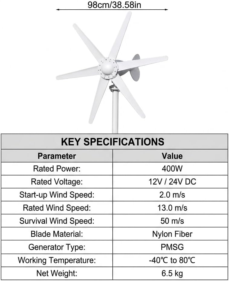 | Included Components | 1 x Wind Turbines 1 x Controller 6 x Blades 1 x Tool Kit 1 x User English Manual |