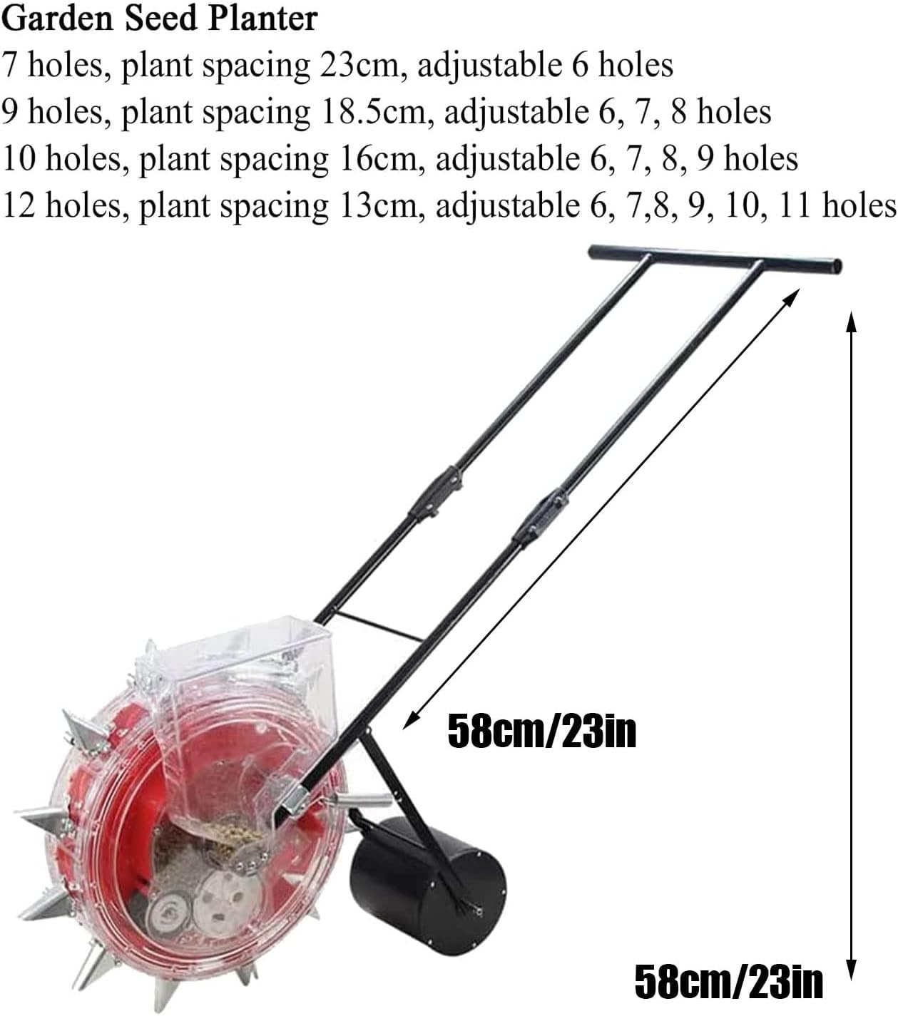 Introducing our Hand-Push Roller Seeder, the perfect tool for efficiently sowing a variety of crops including peanuts, fruits, corn, and vegetables. With its 12 seed trays and adjustable sowing depth of 3.5-7.8 cm, this seeder makes it easy to plant your crops with precision and accuracy.With a productivity rate of up to 1000 km2/h, you'll be able to sow more in less time, making this an ideal choice for farmers and home gardeners alike. Whether you're planting a large field or a small garden plot, the Hand-Push Roller Seeder is a reliable and efficient tool that can help you achieve a successful harvest.Specifications:Product name: hand-push roller seeding and fertilizer applicatorPlanting depth: 3.5-7.8 cmPlanting distance: 13.5cmSeeding amount: 1-3 seedsSize:24*58*58cmWeight:7.5kgPackage Include:1 x Vegetable Seeders