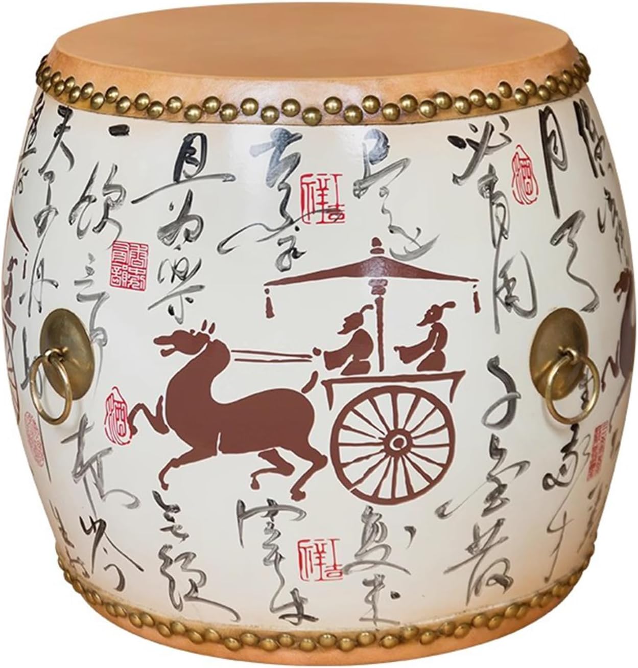 Chinese-Style Solid Wood Drum Stool – Handcrafted Garden SeatOur drum-shaped Chinese garden stool brings good fortune. Use them indoors or outside as a cocktail table, garden seat, or plant stand.Specifications:Name: Drum StoolMade: Wood+LeatherColor: redSize: D 12.6" x H 13.7"Packing list:1 x Garden stool1 pair of drumsticksChinese-Style Drum Stool, Glazed Hand-Painted Drum Stool,Decorative Garden stools,for Indoor Outdoor, Small Drum Stool for Living Room, Balcony & Garden