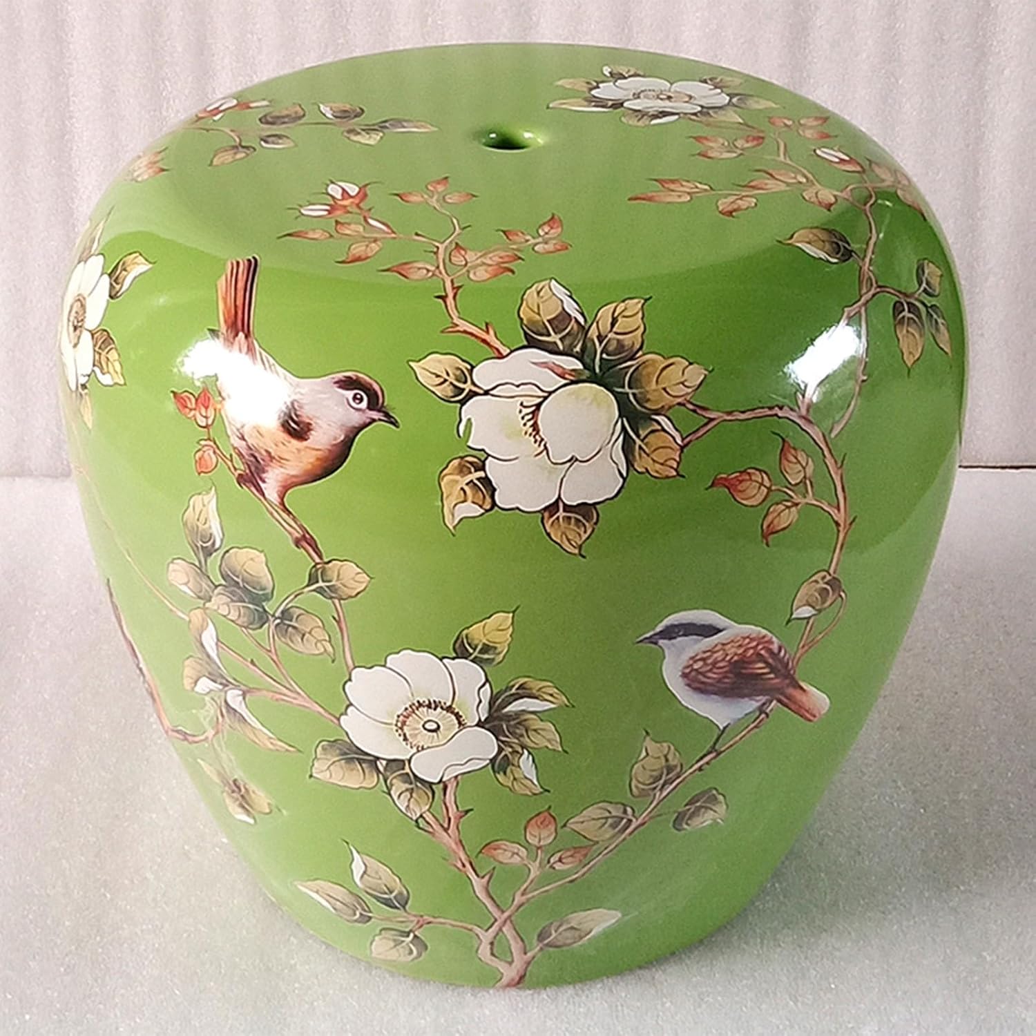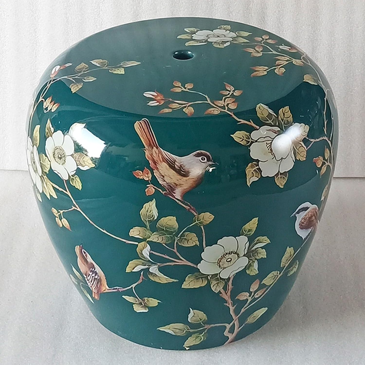 Product Description:This ceramic garden stool features a premium hard-glaze finish for lasting durability, easy cleaning, and scratch resistance. With all-weather performance, exquisite craftsmanship, and a modern-Chinese flower design, it’s perfect indoors or outdoors. Rounded edges ensure comfortable seating, while non-slip pads add stability and protect floors—making it both stylish and practical.As ceramic products may develop small black spots or pinholes during the manufacturing process, this is considered normal. Please purchase carefully if you mind these imperfections.Product Name: Ceramic Drum Garden Stools Decorative Material: Ceramic Colors: Product Dimensions(Diameterxheight):30x33cm/11.8x13inMaximum body diameter:34cm/13.4inPlease clean with a soft towel or paper.Applicable Range: Hallway, balcony, home, office, kitchen, workbench, Shopping malls, exhibitions, weddings and living room, etc.Warm Tips:As the Stools dimensions are manually measured, a difference of 1-2 cm is normal.Due to variations in monitor settings and lighting during photography, please refer to the actual product for accurate color. We appreciate your understanding.If you have any questions, please contact us, and we will respond within 24 hours to provide a satisfactory solution.