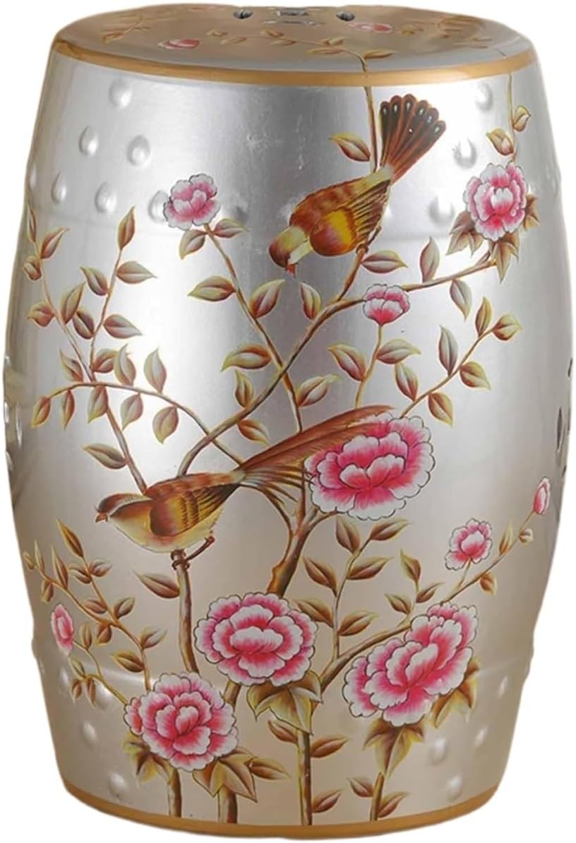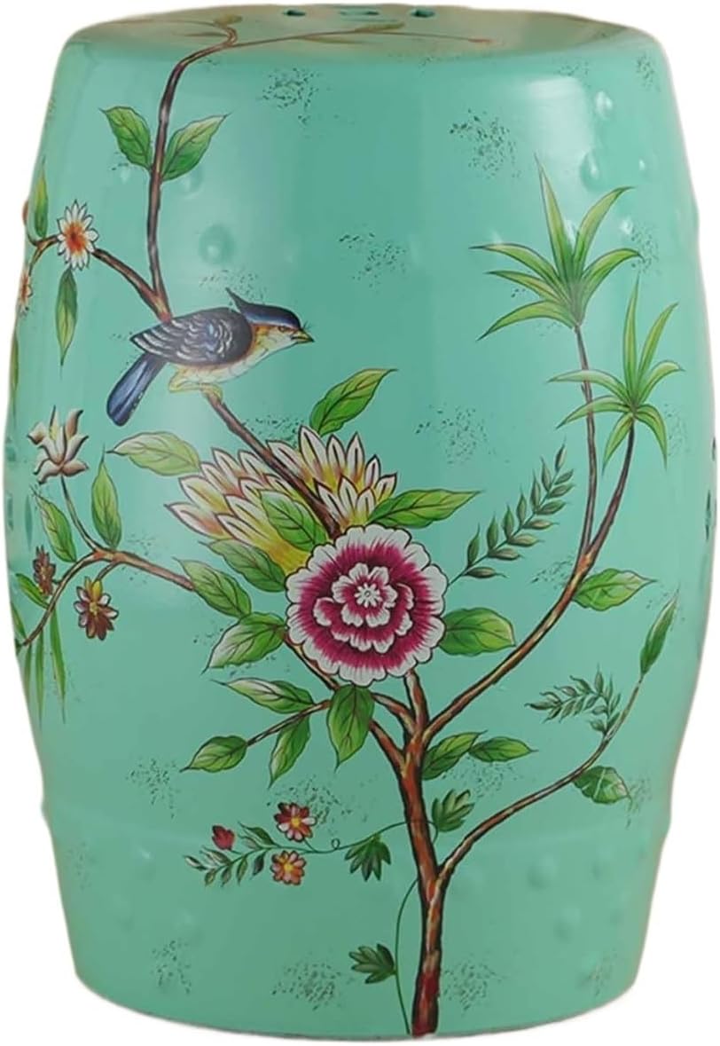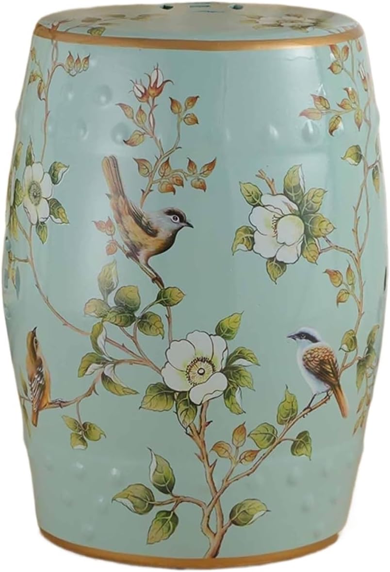 This ceramic drum-shaped garden stool combines durability and beauty. Designed with sturdy hardware, it's suitable for long-term use both indoors and outdoors, enhancing the style of any space, whether in the garden or living room. Its versatile design allows it to be used as a side table, footstool, or additional seating, flexibly adapting to various usage needs. Measuring 11 x 11 x 18 inches, it's compact and lightweight, making it easy to move and place. The high-temperature secondary firing process seamlessly blends the surface with the porcelain body, resulting in vibrant, long-lasting colors that resist fading, ensuring both aesthetics and durability. With thoughtful after-sales service, please contact our customer service team for any questions and a satisfactory solution within 24 hours, ensuring a worry-free purchase.Product Name: Dressing Stool/Shoe Changing Stool/Ceramic Drum Stool with Flower and Bird EmbroideryMaterial: CeramicColor: As shownDimensions: 18.1 x 11 inchesOrigin: ChinaPackaging Contents:1 x Ceramic StoolNotes:1. Due to differences in monitors and lighting effects, the actual product color may vary slightly from the image.2. Due to manual measurement, please allow 1-3 cm deviation in measurement. 3. During the production process, small black spots and pinholes may appear. This is normal. Perfectionists, please handle with care.4. Do not use steel wool or hard objects for cleaning. Minor scratches from using metal cutlery are normal.