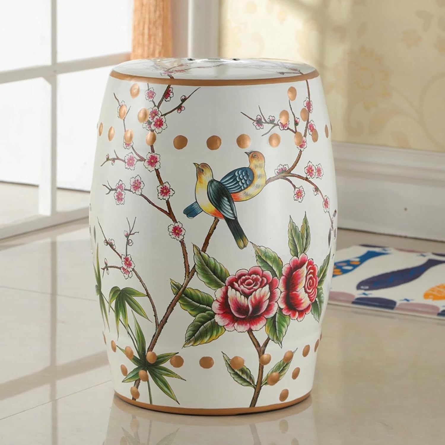 This new Chinese style flower and bird ceramic drum stool, with a classical shape and exquisite flower and bird decoration, cleverly combines ancient charm with new style. After secondary high-temperature firing, it can easily cope with indoor and outdoor dry and wet environments; it can be used as a dressing stool, side table, footstool, beverage plant stand, suitable for various scenes, highly compatible with the seat armrests, ceramic glaze is wear-resistant and scratch-resistant, not easy to fade, and the unique charm of home furnishings that are both classical and practical.Name: Ceramic Drum StoolMaterial: CeramicSize: 18.1*11 inchesOrigin: ChinaPacking list:1 x Ceramic StoolNotes:1. Due to different monitors and lighting effects, the actual color of the product may be slightly different from the picture.2. Due to manual measurement, please allow a measurement deviation of 1-3 cm.3. Small black spots and pinholes may appear during the production process, which is normal. Please purchase with caution if you pursue perfection.4. Do not use steel wool or hard objects to scratch when cleaning. Minor scratches from using metal cutlery are normal.