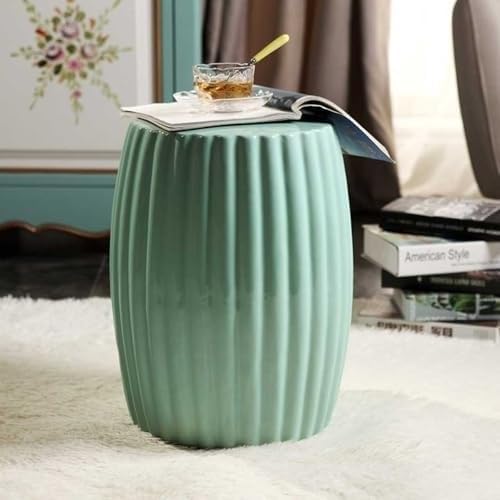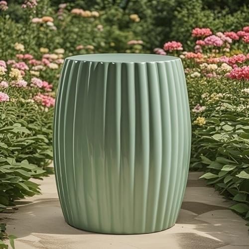 ELEFOCUS Decorative Ceramic Garden Stool, Simple Pumpkin Stripes,Green Garden Stool,Chinese Ceramic Drum Stool(C)