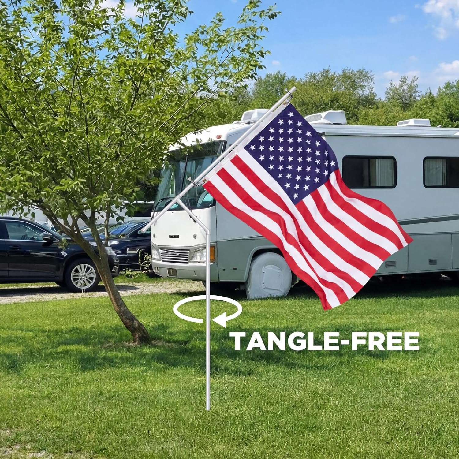 Features: Perfect for RV trips, sports events, backyard gatherings, business promotions, community activities, school functions, and construction sites. Rotating design makes the flag stand out in any environment, enhancing visibility for events or promotions. Specifications: Material: PVC Size: American flag: about 3'x5' Package includes: 1 x PVC telescoping flagpole 1 x American flag 1 x Ground stake 2 x Adjustable flag hooks Notes: Manual measurement, please allow slight errors on size. The color may exist a slight difference due to different screen displays
