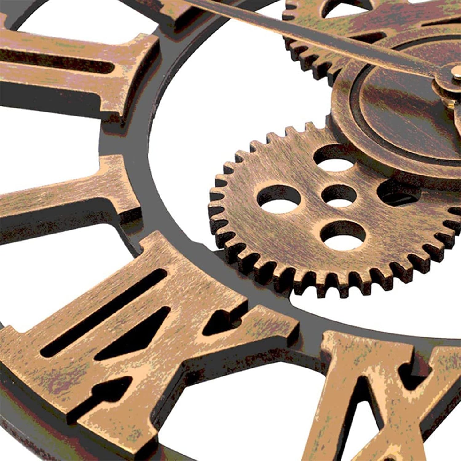 This clock is the perfect choice for every homeowner looking for unique and classy home decorations to hang on the wall.Features:1.Easy hang design with no assembly required.2.Metal Wall Clock with Roman Numerals is a classic ancient art style,has exquisite paint craft,simple and yet elegant design.3.It can be perfectly matched with your classroom,kitchen,school,office,bathroom,living room,café,and hotel.Specification:Name: Retro Decorative Gear Wall ClockMaterial: WoodenProcess: Imitation iron appearance,Multi-layer hand painted,antique and old treatmentBattery Powered: 1xAA battery (not included)Use Location: Outdoor space with shelter/IndoorBe Kindly Notice: Not the Clock to RainPackage:1 x Wall clockNote:1.Please make sure it is stable enough after installation.Due to manual measurement,a distance of 1-3cm is allowed.2.We only sell Pendulum clock and do not include other products.