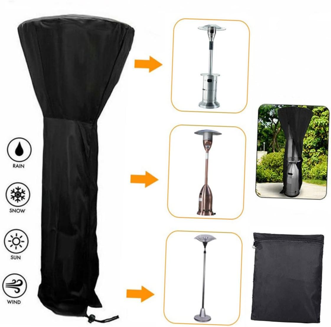 Package Include 1 x protective cover Features - Color: Black Heater Rain Cover - Material: Oxford cloth Heater Cover - Lightweight design, very easy to operate Patio Heater Cover Stand Up. - Foldable material. You can to store and carry when not using All-purpose Heater Cover. - It is made of , which can withstand the long-term use Patio Heater Cover. - Its size is suitable for the most patio heater Waterproof Heater Cover. - Traditional open and , very convenient to use Patio Heater Storage Cover.Goods DescriptionOxford Fabric Heater Cover The material of this cover is oxford cloth, which can withstand the long-term use, safe and , It is waterproof, light, easy to use, easy to fold.All-purpose Heater Cover The product is for protecting heater from damage of rain and snow, and sun