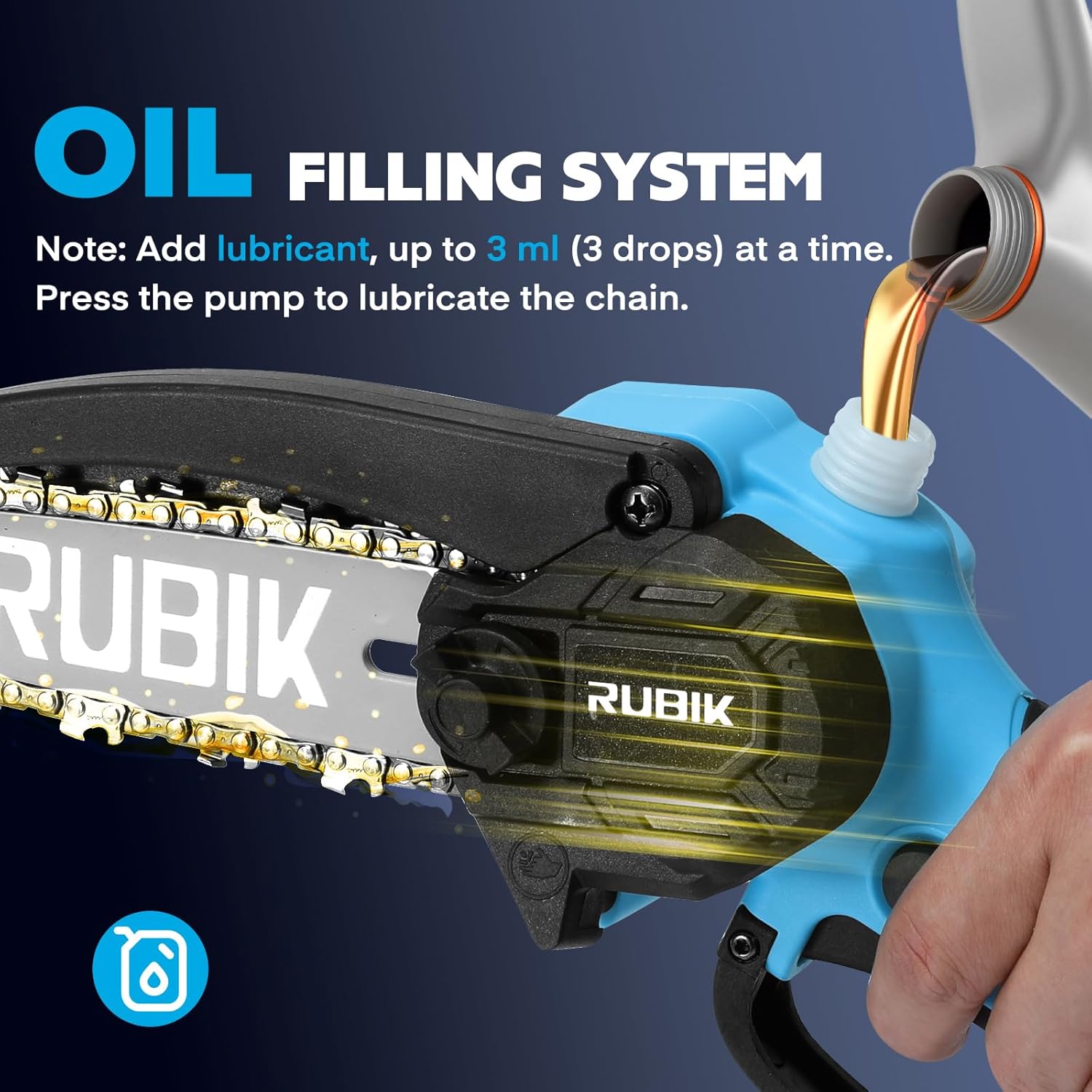 | Included Components | 1*6 Inch Guide Plate 1*8 inch Guide Plate, 1*6 Inch chain 1*8 Inch chain, 1*Lubricant 1*Cleaning Brush, 1*Screwdriver 1*US charger 1*English Manual 1*Gloves Protective Glasses *1, min chainsaw brushless |