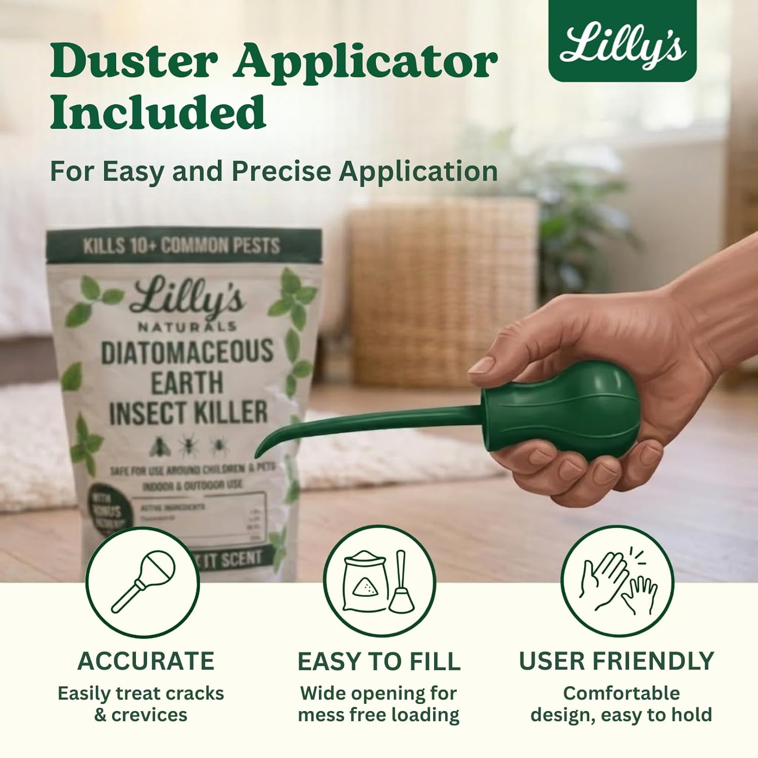 | Included Components | Diatomaceous Earth Powder Duster |