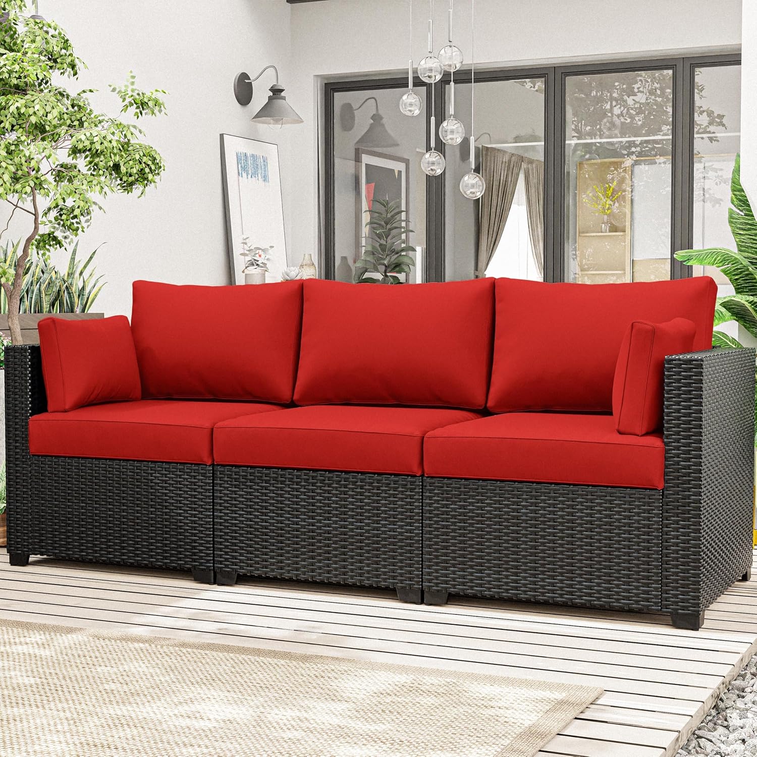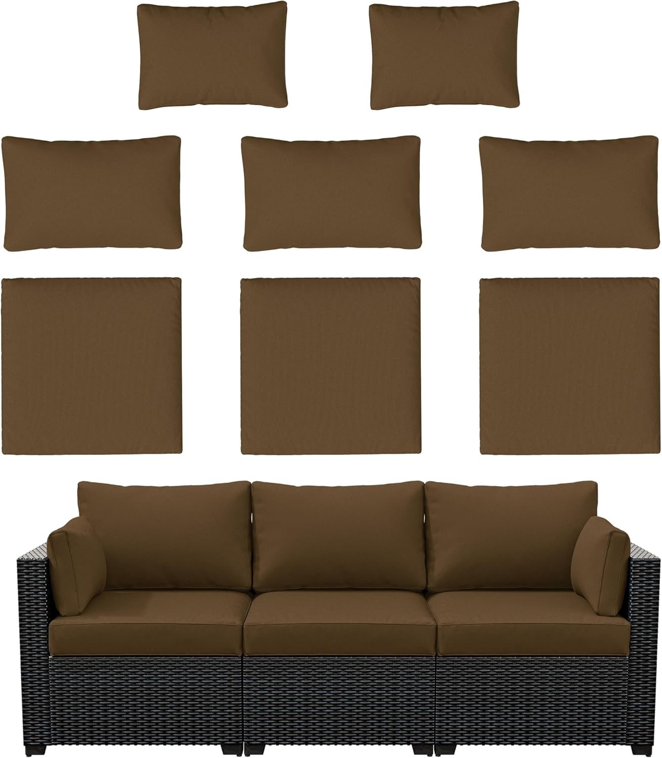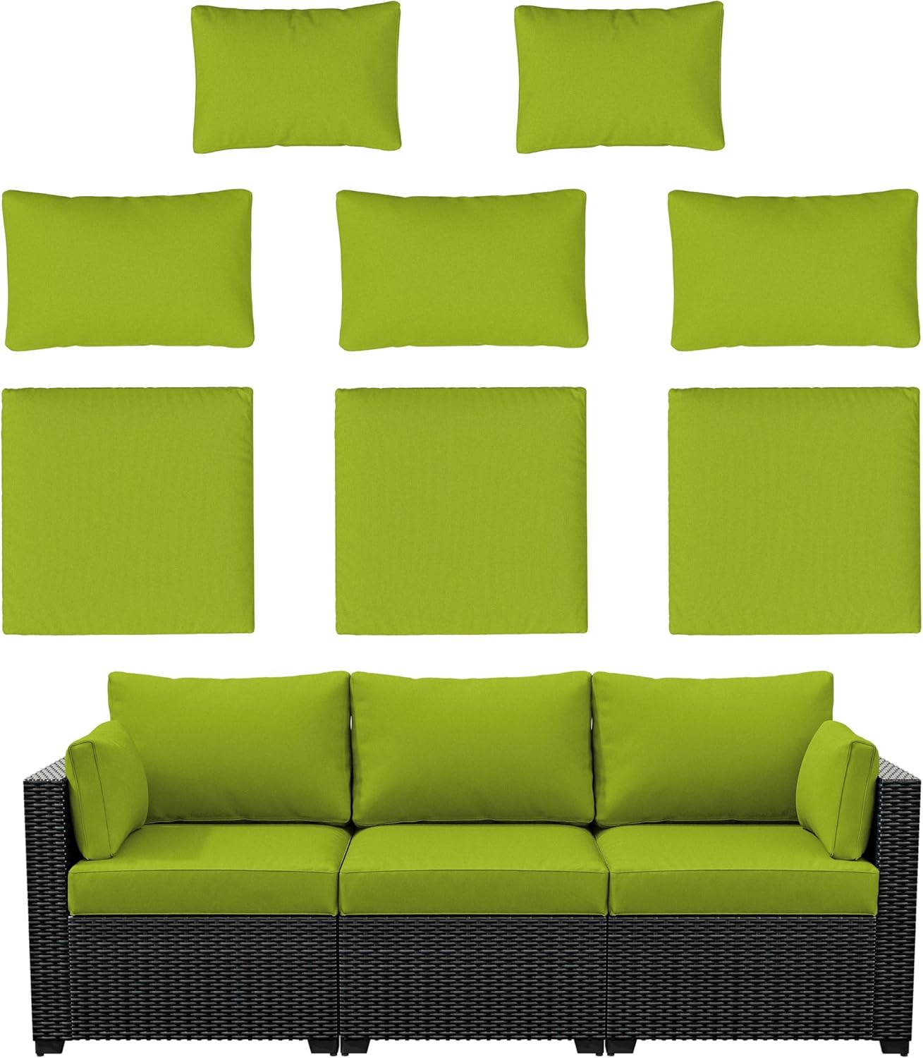 3 seater terrace guest furniture replacement sofa cover 🎄🎁☀️ Product size ☀️➀ 3 Pack - Cushion Cover(25.6L*23.6W*4H inches)➁ 3 Pack - Cushion Cover (23.6L*14W inches)➂ 2 Pack - Lumbar Pillow Cover (23L*12W inches)💡 Note * Not a flat size, but a size that can accommodate the mat🍓 Features 🍓🍰 Upgraded 100% splash-proof Three-layer Outdoor Cushion Cover🧁 Stain Resistant & Low Maintenance🍧 Wear Resistant & UV Resistant🔎 Note:➀ Fabric cover only, cushion not included.➁ Due to differences in display and light, colors may be slightly inaccurate. Please refer to the actual ➂ product for details, The Image for reference only.