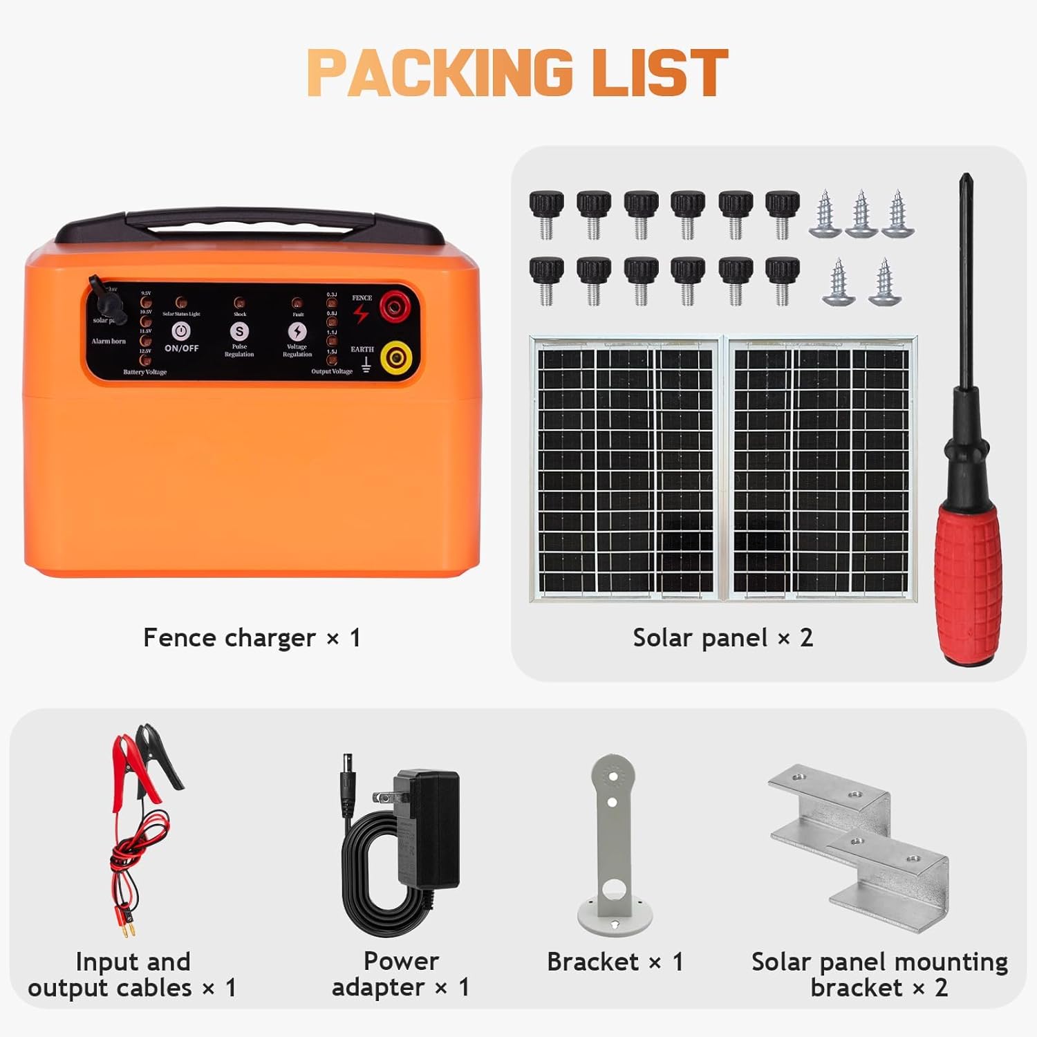 | Included Components | 15W Solar Panel, Solar Electric Fence Charger, input and output cables, install parts, install tools |