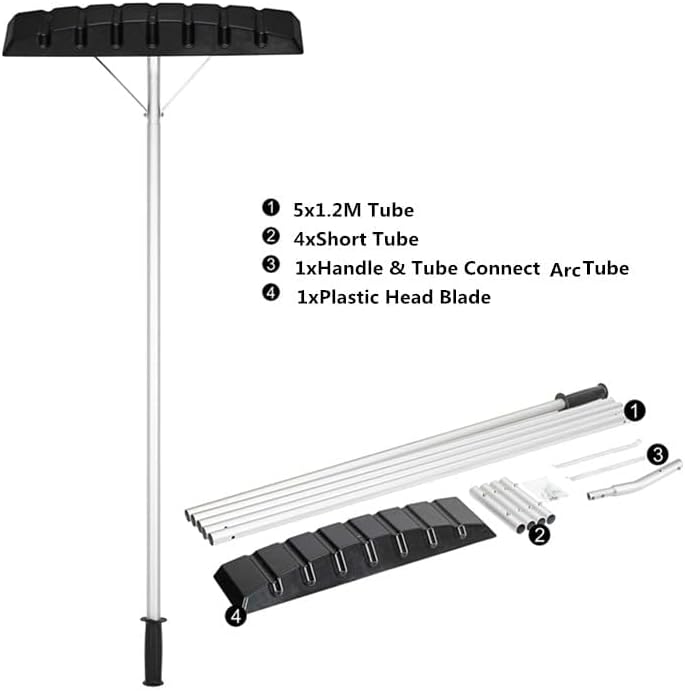 Specification: Pole Material: Aluminum Scraper Head Material: Aluminum, size 66 x 17 cm (26 x 6.7 inches) Pole Length (Retracted): 147 cm (58 inches) Pole Length (Extended): 607 cm (239 inches) Package Includes: 1Pcs * Snow Roof Rake 5Pcs * Poles Note: 1. Due to manual measurement, please allow an error of 1-2cm. 2. Due to different monitors and different lighting, the picture may not show the actual color of the item. Thank you for your understanding.