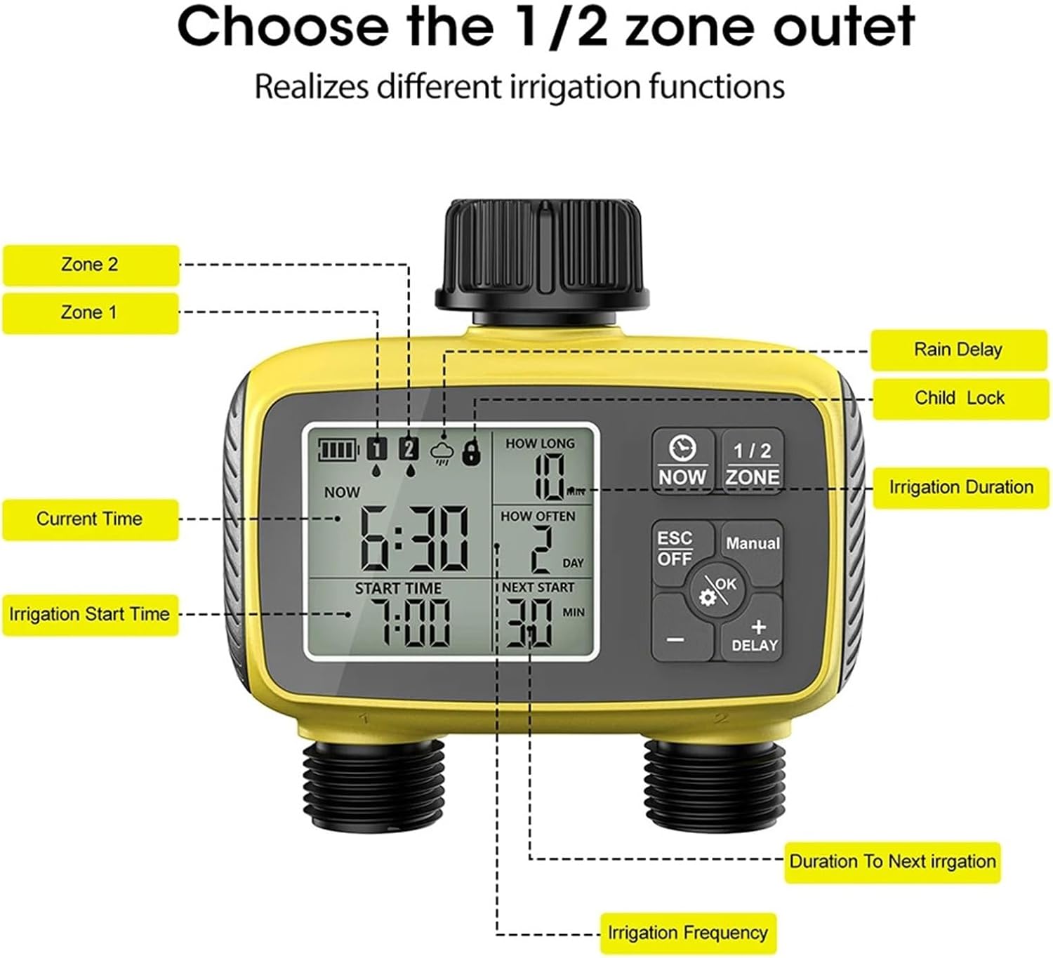 Timers1pc Digital Irrigation Water Timer Automatic Garden Flower Watering System 2 Zone Programmable Irrigation Control Sprinkler
