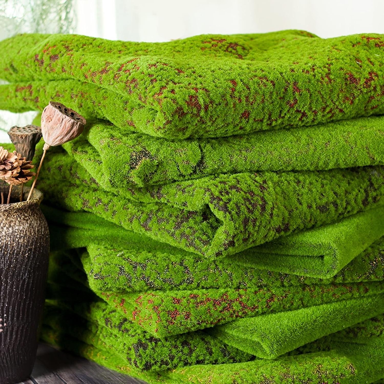 🍀 Features:● Easy to cut into various shapes, high temperature resistance, easy to clean and maintain, also can be used many times, flat and smooth● Applicable places: bonsai shops, restaurants, shopping malls, shops, various places, used for micro landscape decoration modeling●Note: Because it is artificially made, it is worth wool crafting, and the jitter will lose fluff. Generally does not affect the use effect🍀 Product parameters:● Name: Artificial Moss Mat● Size: 100x100cm/39x39in/3.3x3.3ft● Material: PP cotton● Scene: home, bar, KTV, shop wall decoration● Features: lawn decoration, foldable, fake moss design🍀 Package includes:● 1 x Artificial Moss Mat🍀 Please Note1. Flocking moss, woolen material is super soft, the surface is silky, and the bottom is pearl silk cotton, which can be used for a long time2. In order to achieve a high simulation effect, this soft moss uses a special sponge and flocking special effects to achieve such a simulation effect, so shedding is a normal phenomenon3. Please don't throw away these velvets. When the hot melt glue is not dry, sprinkle a layer and press lightly with your hands. The seams will become natural and beautiful, and the green plants will be more beautiful