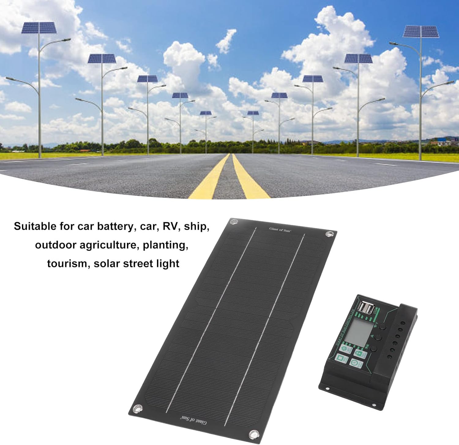 Spec: Item Type: Solar Panel Kit Material: ABS Solar Panel Size: Approx. 30x14cm / 11.8x5.5in Controller Product Size: Approx. 132x68x30mm / 5.2x2.7x1.2in Solar Panel Power: 600W (Without Power Storage Function) Solar Panel Voltage: 18V Controller Voltage: 12 24V Solar Controller Current: 100A Controller Output Power: 1200W (12V) 2400W (24V) Gross Weight: Approx. 405g/14.3oz Package List: 1 x Solar Panel Kit1 x Controller 1 x Clamp/Holder 4 x Suction Cup 1 x Connection Cable 2 x Instruction Book How To Use: Easy to use: Place the solar panel in a position facing the sun. The corresponding interface on the wiring can be connected to products that require electricity. Note: Please allow some error due to manual measurement. Please note that the new type and old type of this product will be sent randomly, and make sure you will not mind before ordering.