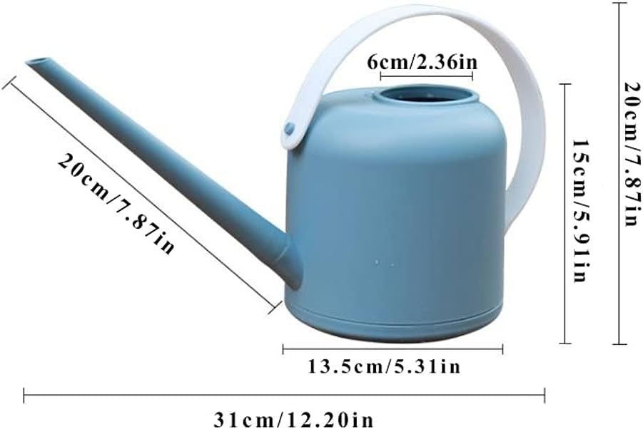 Product Name: PP Watering Can Product Material: High Quality Plastic Size :5.31×7.81×7.87inch/13.5×20×20cm Suitable for : Indoor and outdoor plants ,succulents, bonsai and transplanting. Capacity: 1.6/0.42Gallon Prompts: 1. Please note that due to the influence of light and screen, slight chromatic aberration is acceptable. 2. Please allow 2-3% difference according to manual measurement, please refer to the actual product