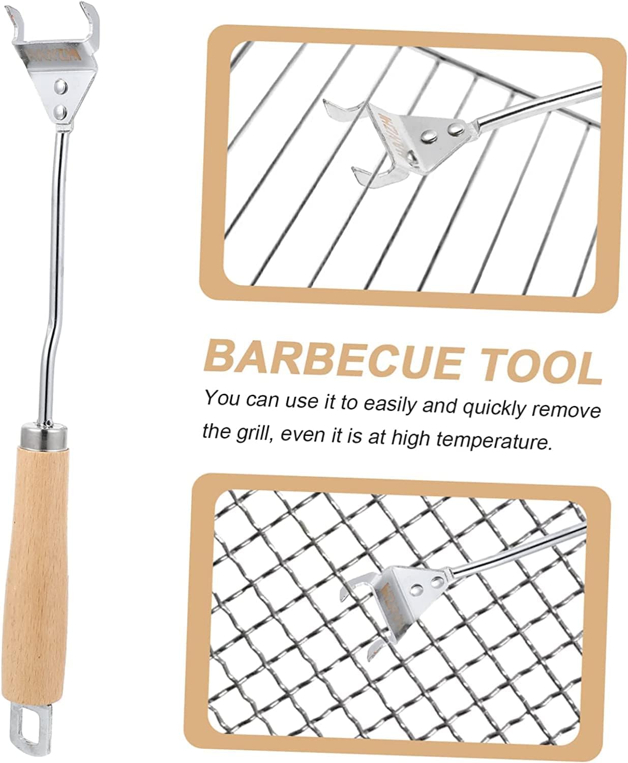 Package Include 1 x grill crowbar Features - With and wooden handle, this humanized design grill crowbar is able to make BBQ more convenient and easy for you hot pot gripper. - Color: As shown cooking grid lifter - Size: 31.00X2.00X2.00cm/12.18X0.79X0 bbq grill lifter. - With a wide range of application, it can be at BBQ parties, in the kitchen or BBQ shops egg gadgets. - You can send it as a gift for your friends who like BBQ outdoor griddle grill. - Material: Wood and stainless steel cast iron grid lifter - Using it to take out of the grills or racks is more safe and quick barbecue net. - It is sturdy and not easy to deform or break for a long time of use Heat Resistant Gripper.