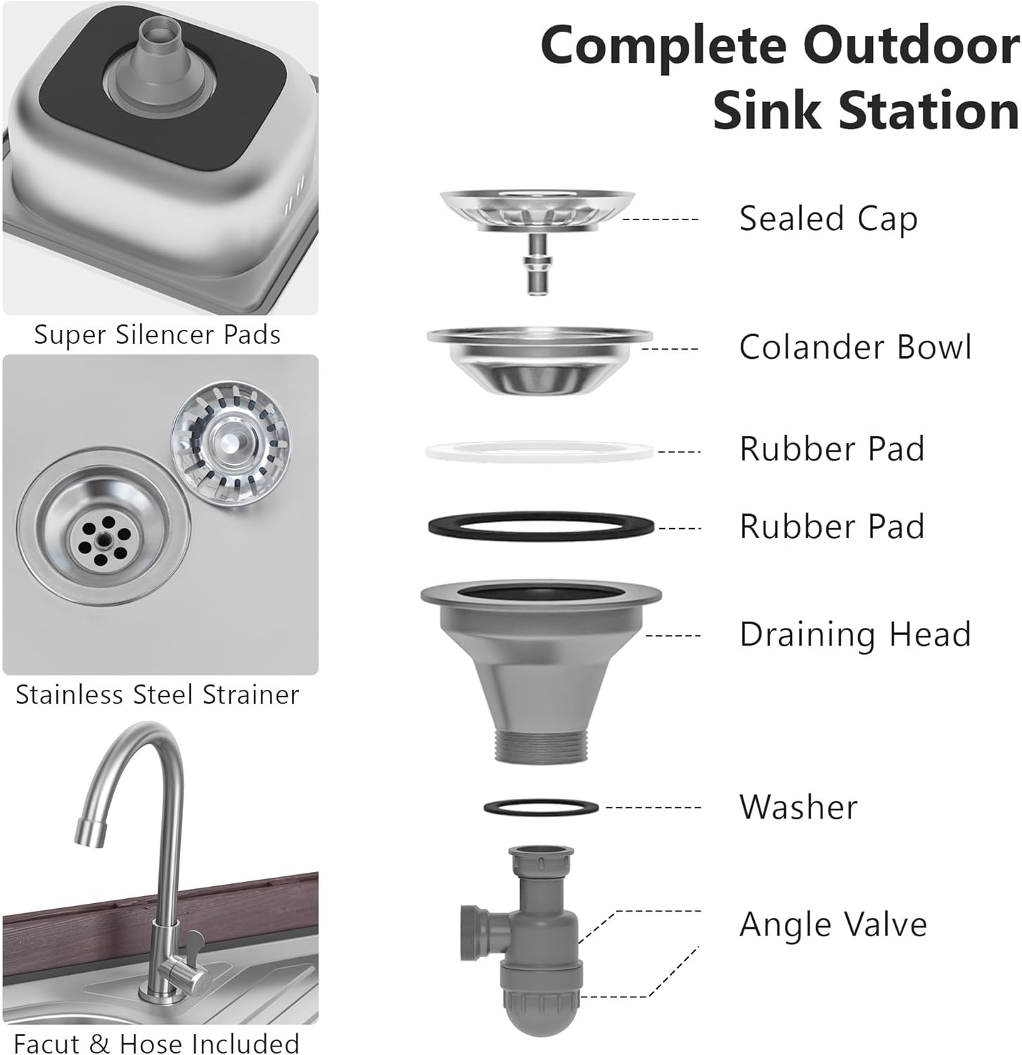 | Material Type | 304 Stainless Top & Sink, Solid Fir Wood |