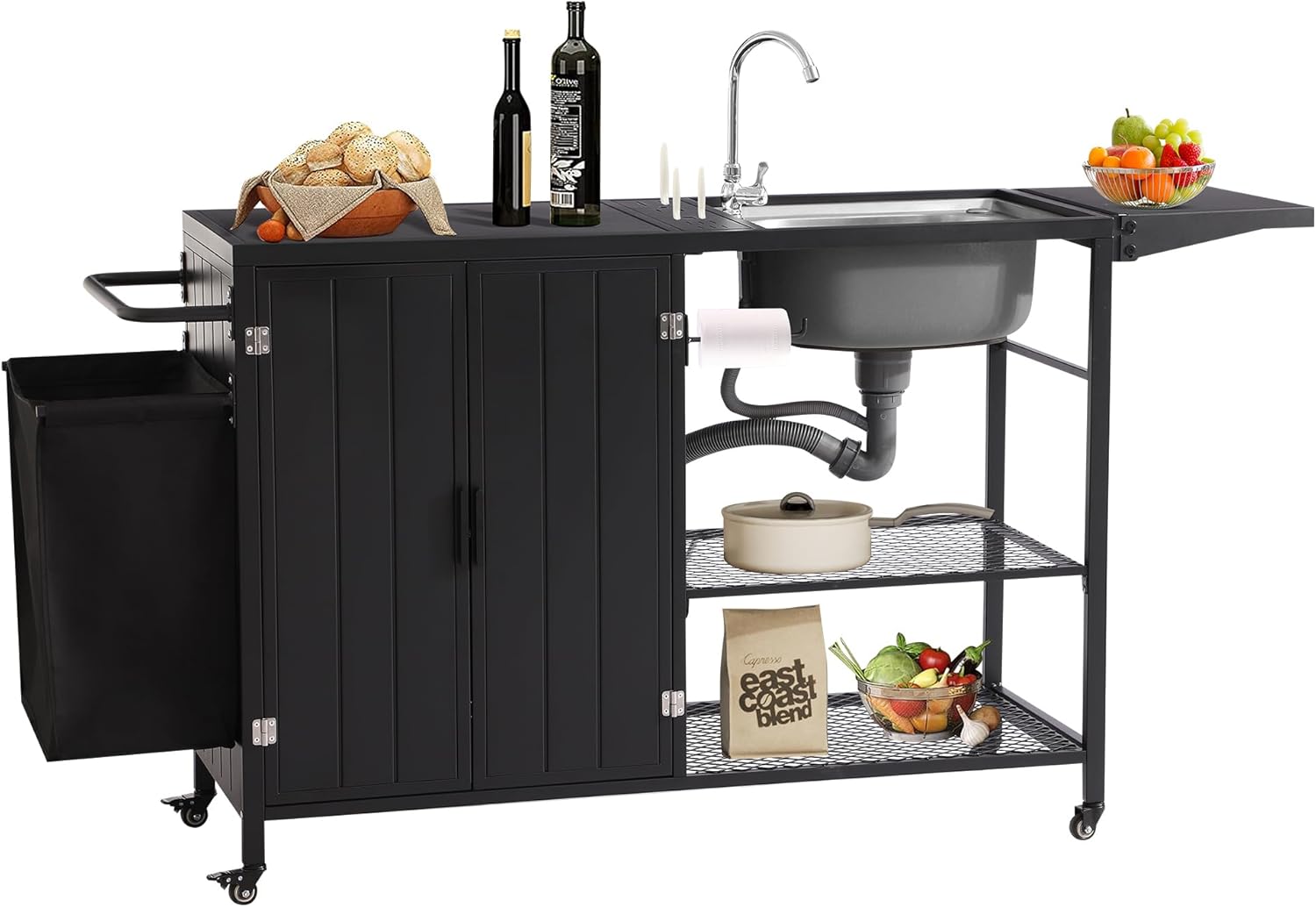 | Additional Features | Folding Side Table, Hanging Hook, Stainless Steel Sink, Swivel Casters, Trash Bin |