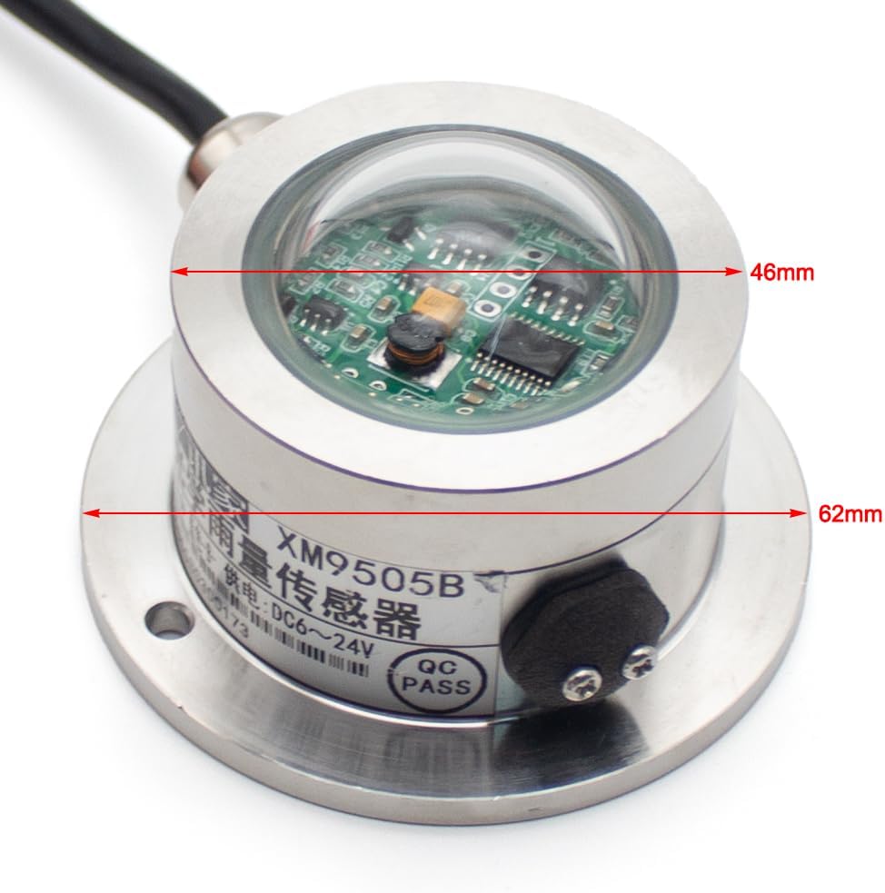 Stainless Steel Optical Rain Gauge RS485 Weather Station Dual-Channel Pulse Rainfall Sensor IP65 Precipitation MonitoringDescription: The XM9505 Series is a cutting-edge stainless steel optical rain gauge designed for professional meteorological monitoring. Featuring a dual-channel infrared optical sensing system and upgraded stainless steel housing, it delivers exceptional durability and accuracy in harsh environments. With RS485 and pulse output options, this sensor is ideal for weather stations, agricultural systems, smart city projects, and traffic management. Specification: Model: XM9505B (RS485) / XM9505P (Pulse) Output: RS485 (Modbus) / Pulse Power Supply: DC 5-24V (XM9505B) / DC 12-24V (XM9505P) Power Consumption: 0.3W (@12V, 20mA) Resolution:0.1mm Accuracy: ±5% (@25℃) Max Rainfall Rate: 14.5mm/min Sensing Diameter: 3.5cm Operating Temperature: -40°C ~ 60°C Humidity Range: 0~99% RH (Non-condensing) Pressure Range: Standard Atmospheric Pressure ±10% Ingress Protection: IP65 Cable Length: 1 meter (standard) Mounting Method: Flange Mounting Application: Meteorological monitoring stations Smart agriculture irrigation systems Flood warning systems Highway/railway weather monitoring Urban hydrological networks Package included: 1 x Optical Rain Gauge