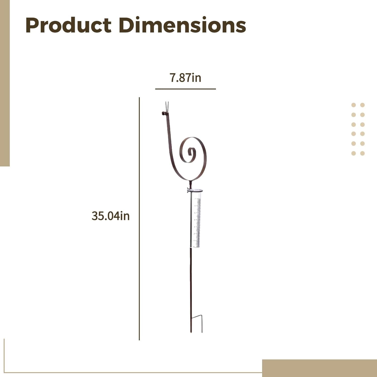 Color:Brown Material:Iron Product Size: Height: 35 in / 89 cm, Width: 7.87 in / 20 cm Package Includes:Rain gauge*1 Note: - Please refer to the measurement. Tiny measuring error is allowable in normal range. - There might be a little color difference due to the monitor, camera or other factors, please refer to the physical item.