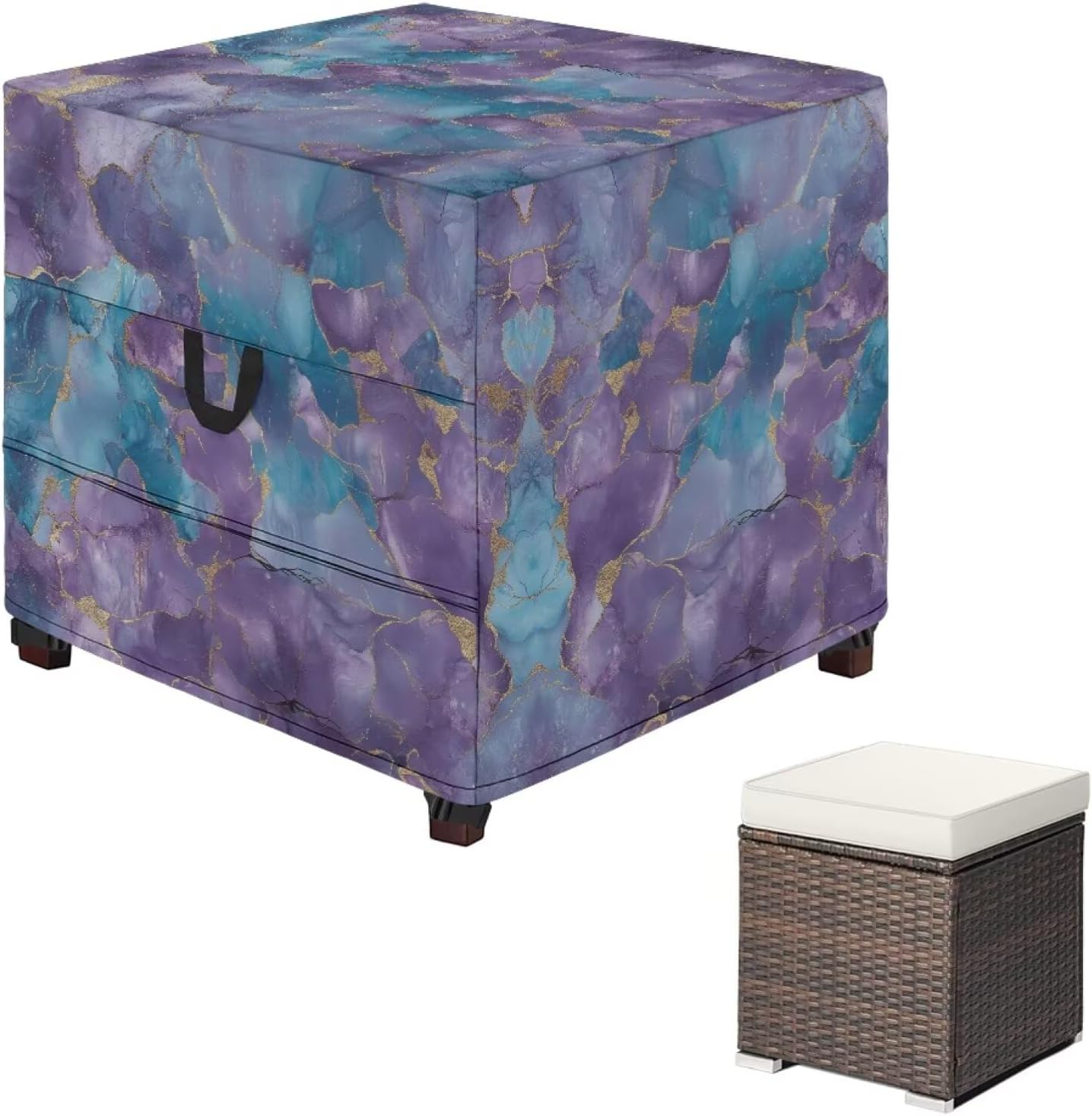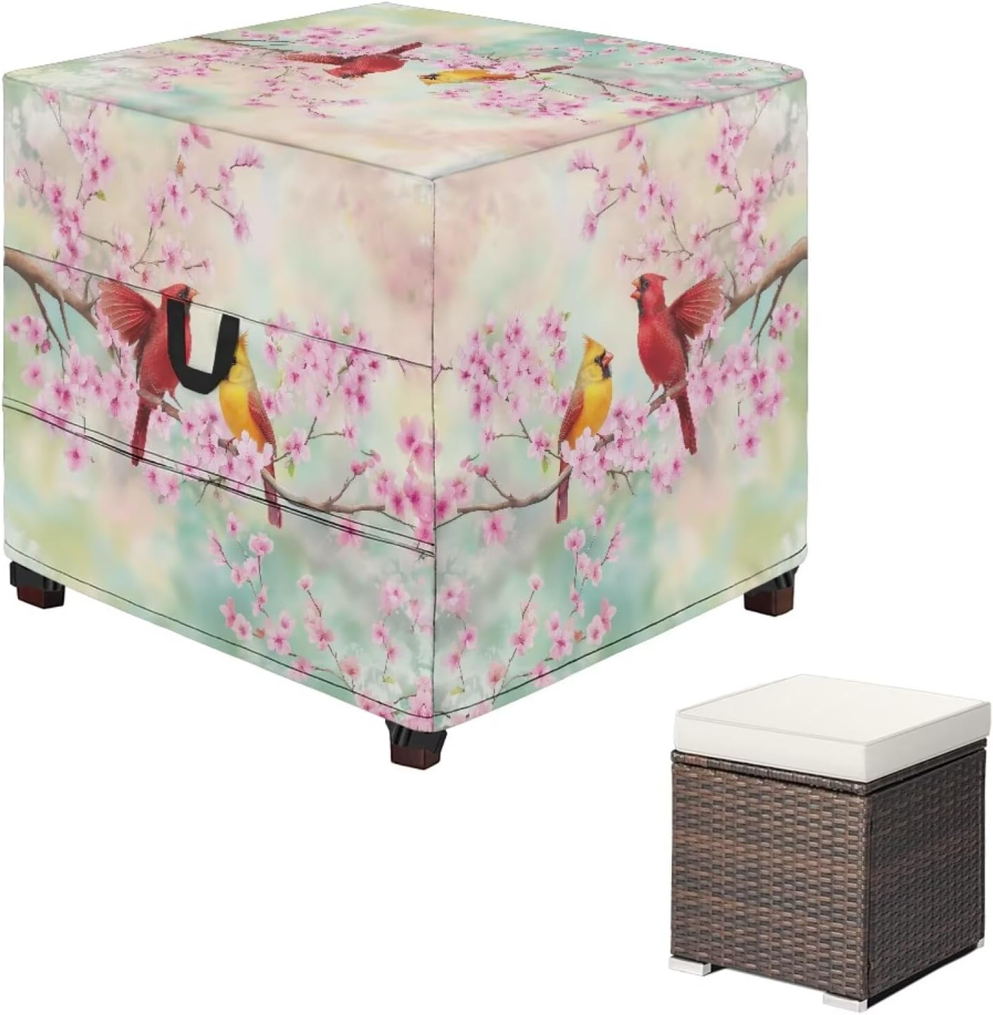 How strong is the Texas sun? Watching a newly purchased wicker chair go from caramel to off-white in three months is like watching summer fade a little. Water marks from torrential rains, cracks from UV burns, and sand and dust from strong winds shorten the "life cycle" of outdoor furniture in extreme climates -- but now that can be rewritten. Patterned aesthetics that stop the patio at the height of summer . Our Patio Ottoman Cover frame summer's vitality in every inch of fabric: the golden petals of sunflowers with their dewy sheen, the gradient colors of blue hydrangeas like the sky at the beginning of an afternoon squall. When the Outdoor Ottoman Cover the rattan chairs, it is not only protection, but also like hanging a breathing landscape painting for the courtyard, so that everyone who passes by can feel the warmth of summer that has been retained. The adjustable tightening cord at the bottom of fits the chair securely and prevents it from being lifted by strong winds. Available in 4 sizes, it is recommended to choose a size that is 1-2 inches wider than the body of the chair to allow for ventilation. Installation takes less than a minute for one person to complete by lifting up on the reinforced carry handles and pulling down on the cords. From battling the Texas sun and wind to preserving the colors of your patio all summer long, this chair cover has never been about more than "protection" - it's about making every piece of outdoor furniture a permanent fixture in time.