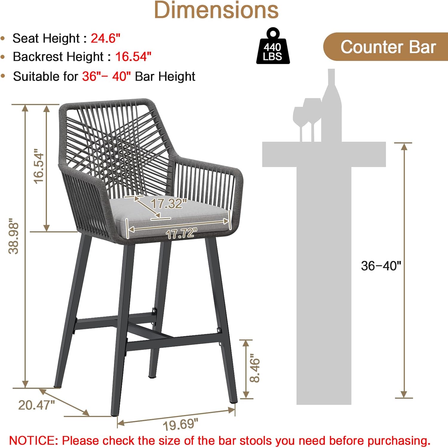 | Size | 24" Height Counter Stool |
