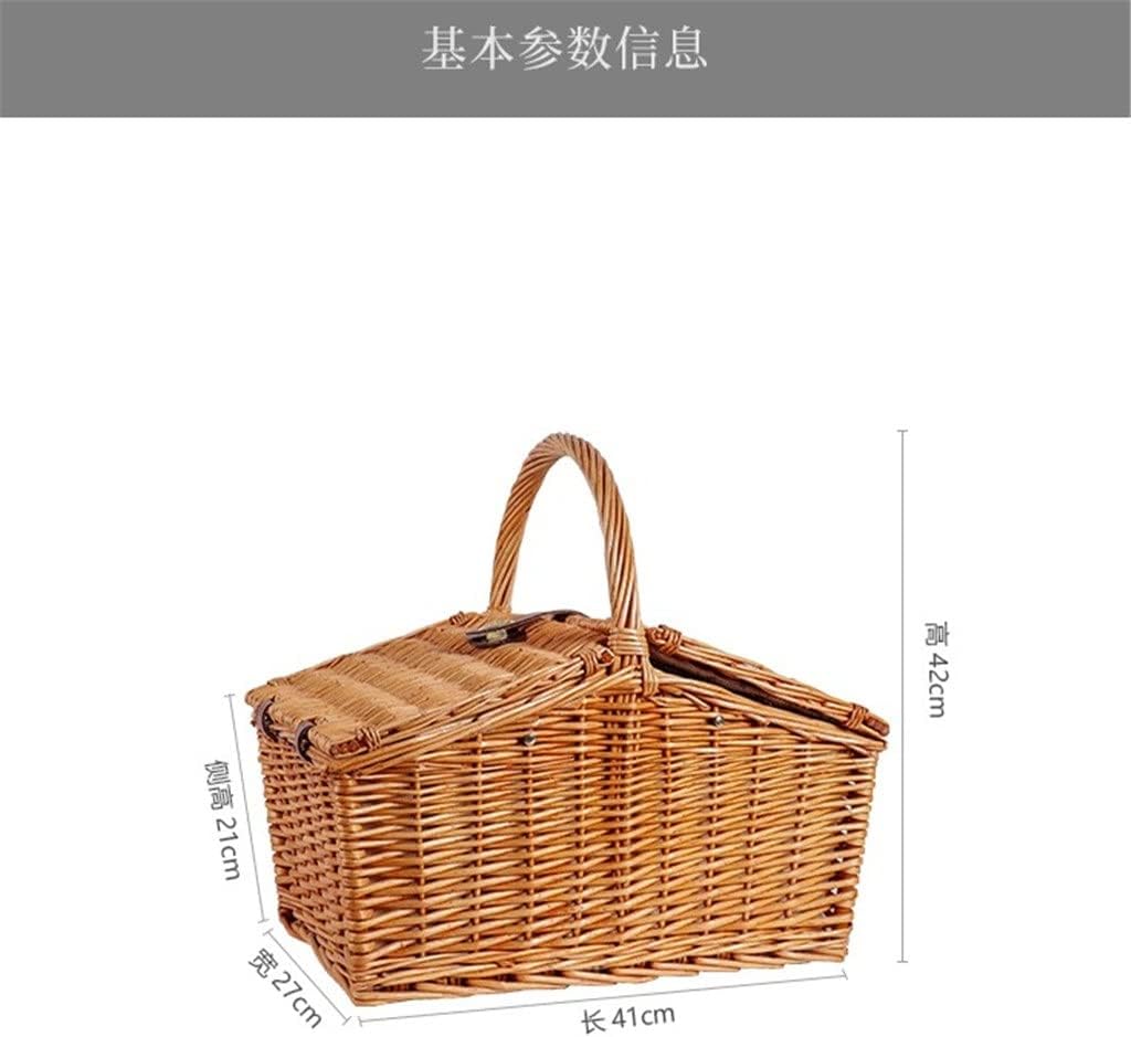 Natural handmade wicker picnic basket is strong and .Features durability and a classic, stylish look.This wicker picnic basket has plenty of room and is fun, lightweight and easy to carry.It comes with everything a small family or couple could need.Great wedding gift for couples.Specification:Material: WillowColor: As ShownSize: 41x27x21cmPackage Includes:1x picnic basket(Other accessories not included)Notes: 1. Only sell main products, not other products.2. Since manual measurement is required, please leave a space of 1-3 cm.3. Due to screen differences, the color may be slightly different from your expected color, please allow.Remind:After receiving the packaging, please check the packaging and the product carefully. If the received item is defective or has any questions, please us via email to resolve the problem. We will reply as soon as possible and do our best to meet your needs!Our cloth organizer storage bins perfectly matched with a variety of shelf storage (bedding, bottles, blankets, diapers), toys, magazines, books, files, remote control, vitamins, medicines hobbies art craft supplies and other personal items, shelving baskets will keep your home and office tidy for a long time