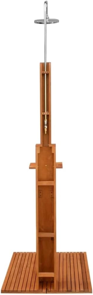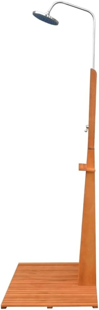 This outdoor wooden shower allows you to take a refreshing shower in your garden or by your pool before or after swimming. Made of eucalyptus hardwood and with a sturdy metal construction, this outdoor shower is very durable. The all-in-one shower with a beautiful, smooth wooden stand and platform are designed for extra comfort. It can be easily connected to any garden hose, and the showerhead can be adjusted to the desired height. With a clean and luxurious appearance, this outdoor shower will make a great addition to your garden or swimming pool.Color: Brown and silveryMaterial: Natural, oil-finished eucalyptus hardwood + steelTotal size: 27.6" x 27.6" x 86.6" (L x W x H)Height-adjustable showerheadConnects easily to any garden hoseFree-standing designEasy to cleanEasy to assemble
