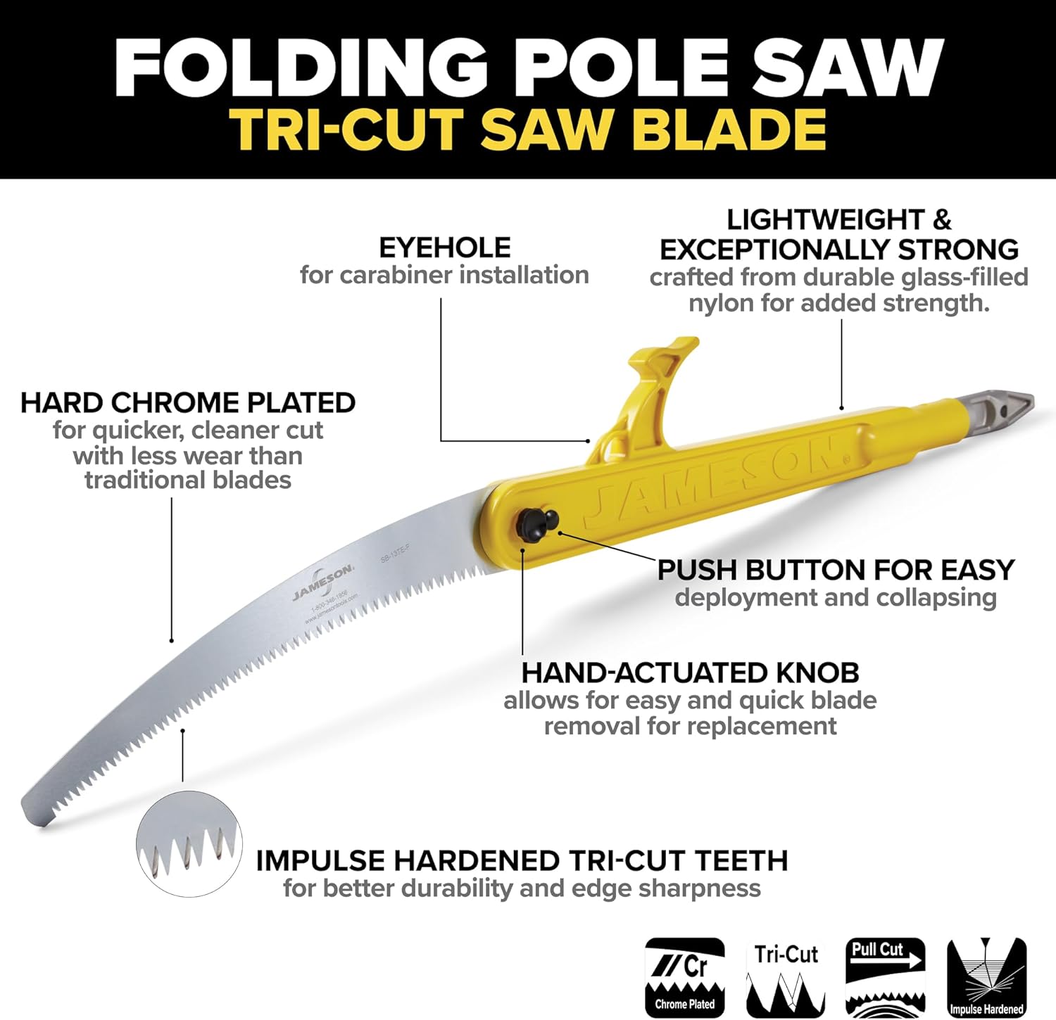 Pro-Climber Kit with BL Poles: The tree trimming kit includes lightweight B-Lite 6′ fiberglass extension pole and 6′ base pole, both known for strength and durability, along with the PH-14-PKG-BR-RWB fixed pulley pruner with premium bumpy rope. The PS-4FS folding pole saw head with a 13-inch barracuda tri-cut saw blade, and the V-1 saber tooth nylon composite limb raiser for versatile and safe vegetation clearing. Enhanced Safety: Safeguard against accidents with a blade cover that shields the cutting edge when not in use. Gear Protection: Protect ropes, harnesses, and equipment from costly damage during climbing and storage. Lightweight Advantage: Experience superior mobility with a lightweight design, outperforming traditional pole saws with leather scabbards. Compatible Ferrules: Works seamlessly with Jameson standard aluminum ferrules for reliable performance. KIT INCLUDES: (1) BL-6 (6 ft. Extension Pole) (1) BL-6F (6 ft. Base Pole) (1) PS-4FS (Folding Pole Saw) (1) V-1 (Saber Tooth Nylon Limb Raiser) (1) PH-14-PKG-BR-RWB (Fixed Pulley Pruner)
