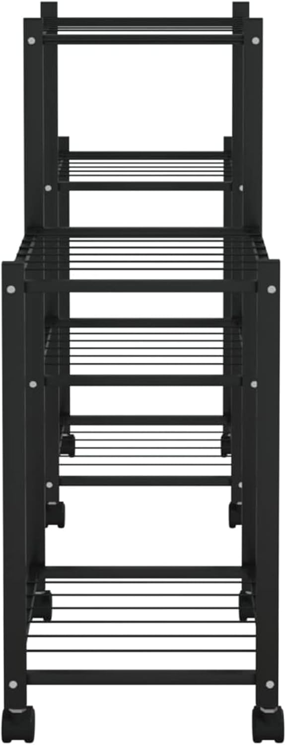 Description This flower stand is the ideal solution for storing and displaying your plants and many other items. Premium material: This corner plant shelf is made of iron, a durable and maintenance-free material, ensuring years of use. Durable and robust structure: the iron structure of the flower pot ensures robustness and stability. Useful Shelves: The planter provides convenient space to display your lovely plants. Can also be used as a display stand, storage shelf, etc. Flexible design: thanks to the included wheels, it is easy to move. Specifications Colour: black. Material: powder-coated iron. Dimensions: 83 x 25 x 63.5 cm (L x W x H) Assembly Required: Yes