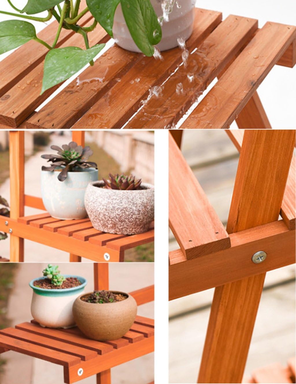 EXQUISITE CRAFT ★ QUALITY ASSURANCE ★ CHOICE MATERIAL ★ QUALITY SERVICE Our flower rack is made of metal and fits on the balcony, the terrace or in the garden. The multiple steps are mounted at different heights and provide ample space for your flowerpots, creating a beautiful, spatial appearance. Our plant stairs have a particularly high load capacity, which means that even heavier pots find their place on it.Product DescriptionThese lovely flower stairs provide endless space for you to display your favourite plants. Present your colourful buds, herbs, flower pots and vases with a personalised plant corner. The 5 shelves provide ample space for orchids, gerberas, ferns, etc.The plant stand is made entirely out of wood. It is suitable for indoor use, in the living room, hallway or conservatory, for example. The flower rack looks especially charming against a wall.Wooden Flower Ladder for Indoor and Outdoor Use Total size: Small : LxDxH: approx 74 x 26 x 144 cm Capacity per tier: approx 15 kg Weight: approx 4kgFlower Rack for your Greens For flower pots, vases and small flower boxes Present your colourful blossoms such as gerbera, carnations, iris, tulips, orchids, freesias, daffodils, violets, etc. Also suitable for green plants, vines, ferns, small bushes or bonsai trees Display your small herb garden including garlic, basil, dill, chamomile and mint Quick and easy assemblySpacious Flower Stand 5 shelves provide ample space for plants and decor Solid wood emits a natural charm Rustic flair especially matches environments in the cottage-style Multi-tiers etagere made of pine wood for indoor and outdoor use Free-standing flower display for the living room, hallway ,balcony,or conservatory.Included in Delivery Flower stairs Assembly materials and inst