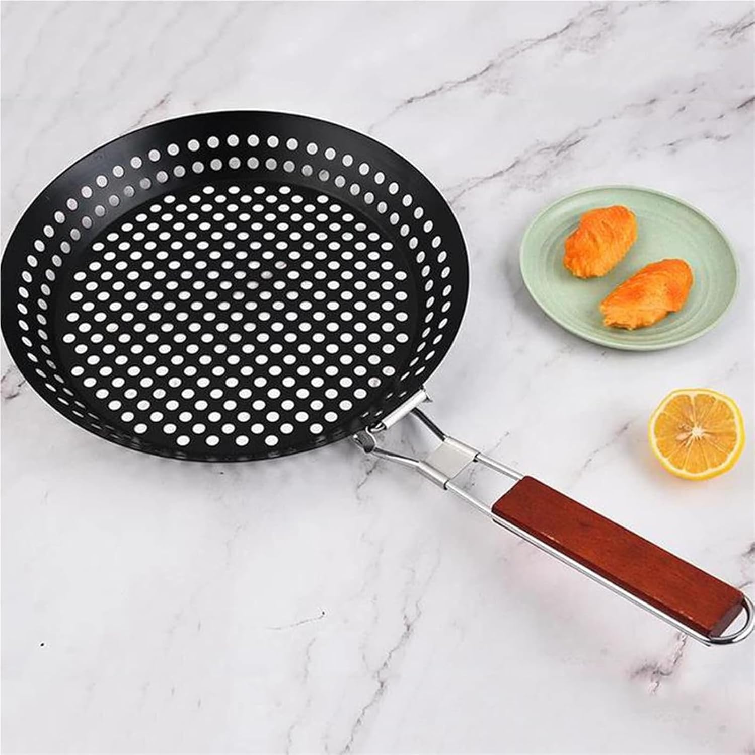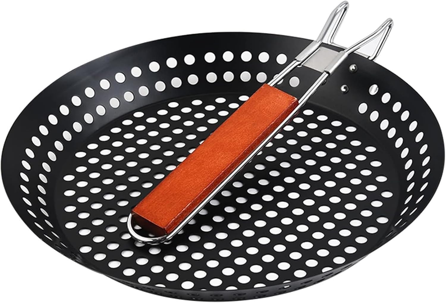Product Description:Upgrade Your BBQ Game with the Ultimate Grill Basket!Tired of losing shrimp or veggies through grill grates? Our stainless steel grill basket solves all your outdoor cooking struggles! Designed for easy flipping and even cooking, this lockable grill basket keeps food secure while the heat-resistant handle ensures burn-free handling.Why Choose Our Grill Baskets?430 Stainless Steel – No rust, no toxins, just durable performance.Secure Locking Mechanism – Flip burgers, fish, or kebabs without spills.Cool-Touch Handle – Grill safely with a comfortable grip.Heavy-Duty Build – Thick steel frame withstands years of BBQ abuse.Perfectly For: Camping, tailgating, and backyard BBQs Grilling delicate foods like fish, veggies, and shrimp Gifts for dads, husbands, and grill enthusiastsMake Every BBQ Effortless – Grab Your Grill Basket Today!Specification:Product Name: BBQ Grilling TrayProduct material: carbon steel + non-stick coating + (chrome-plated iron + wooden handle)Product color: blackProduct weight: 579GShape: roundProduct size: diameter 30 cm height 3.5 cm handle length 26 cm: barbecue grilled fishPackage contains:1*BBQ Basket
