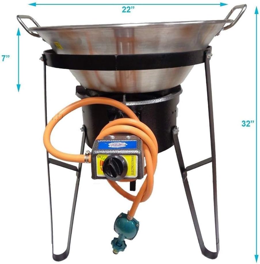 Cazo Stainless Steel Large Widespread Heavy Duty with Burner & Stand Set Comal Stand 19.5" in Top Diameter & 27" Heigh of Set…
