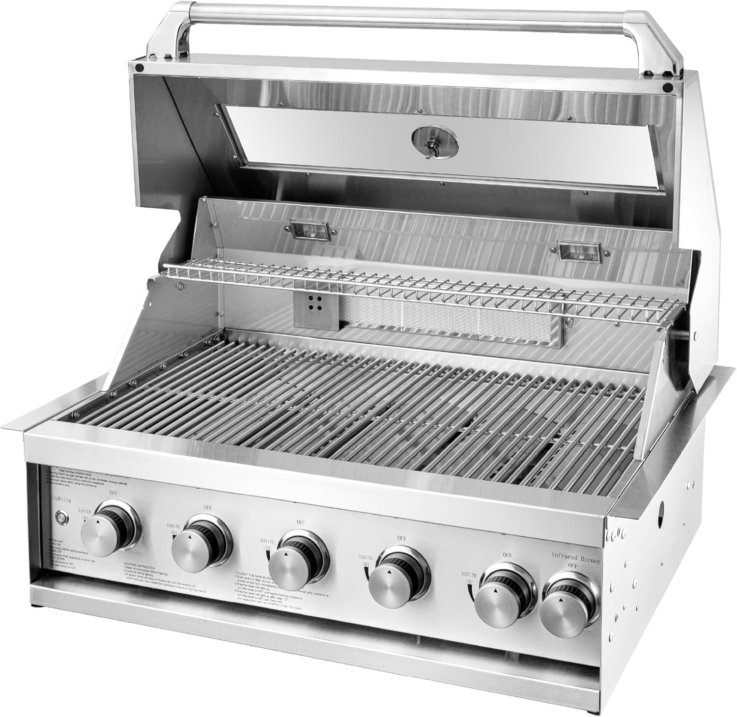 Elevate your outdoor cooking experience with our state-of-the-art Stainless Steel 304 Built-In Gas Grill, a masterpiece designed for the discerning grill master. Crafted from premium stainless steel, this grill is not just a cooking appliance but a cornerstone for your outdoor kitchen, promising durability and style that withstands the test of time and elements. At the heart of its design is a tempered glass viewing window, a thoughtful feature that allows you to monitor your culinary creations without lifting the lid, ensuring that heat remains locked in and your dishes cook to perfection. As the sun sets and the evening draws in, continue your grilling without missing a beat, thanks to the integrated inside lights that illuminate your cooking area. This innovative feature ensures that you can keep a close eye on your steaks, ensuring they are grilled to perfection, regardless of the lighting conditions. Say goodbye to the frustration of interrupted cooking sessions caused by rusted batteries; our grill is equipped with powerful individual burners ignited electrically, providing consistent and reliable heat every time. But the innovation doesn't stop there. Positioned at the back of the grill, an infrared burner opens up a new realm of grilling possibilities, allowing you to sear steaks to perfection or tenderly cook delicate foods, adding versatility to your cooking repertoire. Whether you're a seasoned grill enthusiast or a newcomer looking to make your mark, this grill, with its robust design, premium materials, and innovative features, is tailored to elevate your outdoor dining experience. Welcome to the future of outdoor cooking, where every meal is a masterpiece waiting to be discovered.