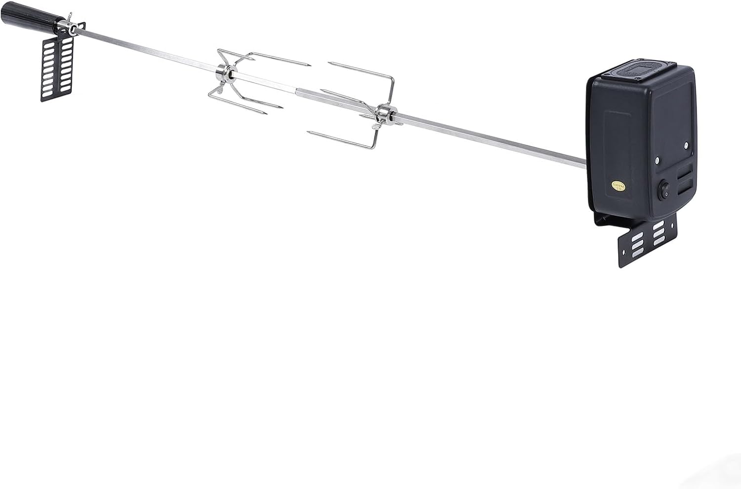1. Stainless Steel Rotisserie Kit: Equipped with water-resist on off witch design, effectively prevent rotisserie grill kit from being damp or soiled when used outdoors, extending service life. 2. Stable Rotating Motor: Features a stable and efficient rotating motor to ensure even grilling and better taste of food. Use it to evenly brown roasts and prepare foods for your friend and family get togethers. 3. Strong Load Capacity: Rotisserie grill kit will be capable of supporting up to 15kg of food, meeting various grilling needs with reliability and durability. 4. 304 Stainless Steel Material: Rotisserie fork is made of 304 stainless steel materials, rustproof, heat resist and for use. It is easy to maintain and clean. 5. Versatile Usage: Suitable for outdoor roasting of suckling pig, chicken, lamb, etc., as well as for family gatherings and outdoor picnics. A nice addition to any patio, backyard, terrace or when your camping. Specification: Item Type: Rotisserie Grill Kit Material: 304 Stainless Steel Weight: Approx. 1880.00g / 66.32oz Battery: 2 x AA (Not Included) Applicable Maximum Grill Width: 77cm / 30.3in Package List: 1 x Motor 2 x Forks 2 x Grilling Rods 1 x Instruction Manual 2 x Stands 1 x Handle 8 x Washers 4 x Nuts 4 x Screws 1 x Wrench 1 x Connector