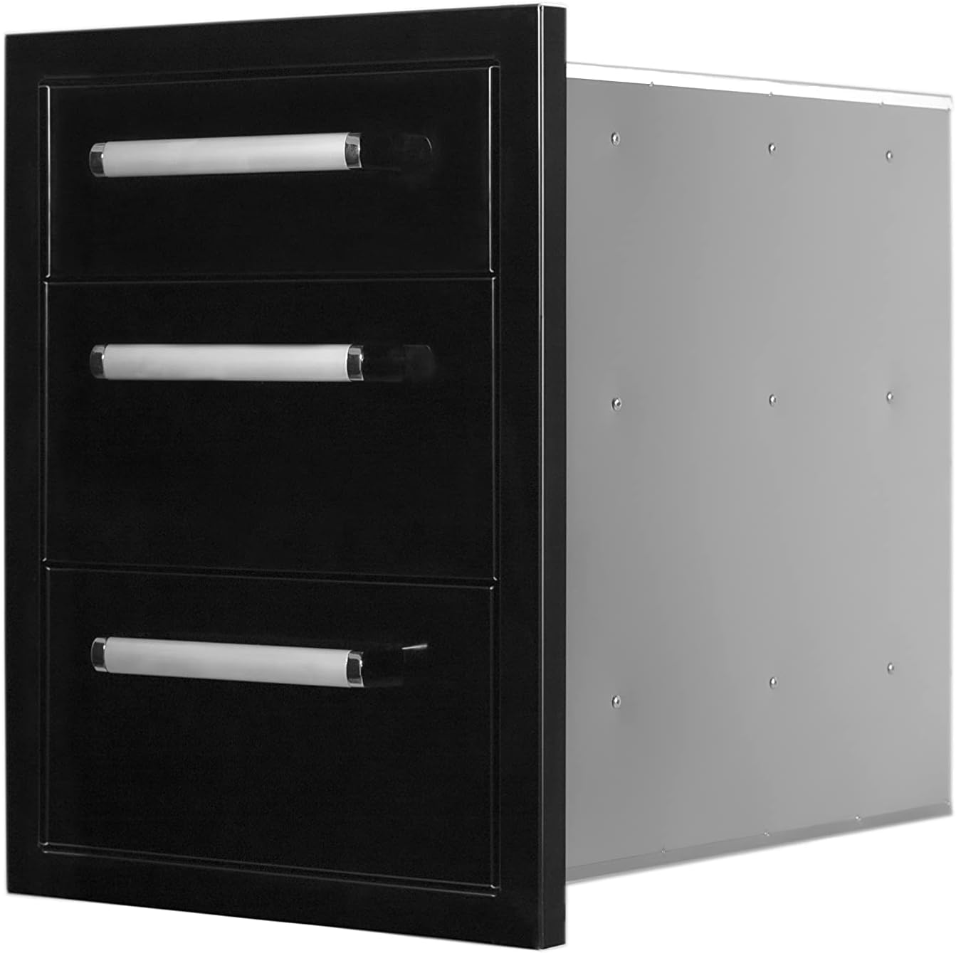 BONFIRE OUTDOOR APPLIANCESGrilling meat for the whole family and eating all together is a lovely activity that people always do in the summer holiday. The Bonfire outdoor kitchen appliances can take your backyard BBQ idea to a sizzling new level with the outdoor kitchen of your dreams. Our CBATD triple drawer blends premium-grade materials, outstanding performance and never-ending innovation into one package. This outdoor kitchen drawer is equipped with 3 premium-grade 304 stainless steel storage drawers. The drawers come with sturdy sliding trails and the self-closing system for convenient. Item measures 16.5-inches long x 21.9-inches wide x 22-inches high, and weights 45.19 lbs.PRODUCT INFORMATIONBrand Name: BonfireModel Number: CBATDExterior Material: 304 Stainless SteelItem Weight: 45.19 lbsShipping Weight: 50.7 lbsProduct Dimensions: 16.5*21.9*22 inch (LxWxH)Cutout Dimension: 14.43*19.5*19.37 inch (LxWxH)SATISFACTION GUARANTEEWe believe in our highest quality products and stand behind every product we make. If our outdoor kitchen drawers fail to live up to your standards, simply let us know what the issue is with your built-in triple drawer combo and we’ll do whatever it takes to make things right; At Bonfire, we pride ourselves on premium quality, outstanding performance and excellent customer service.