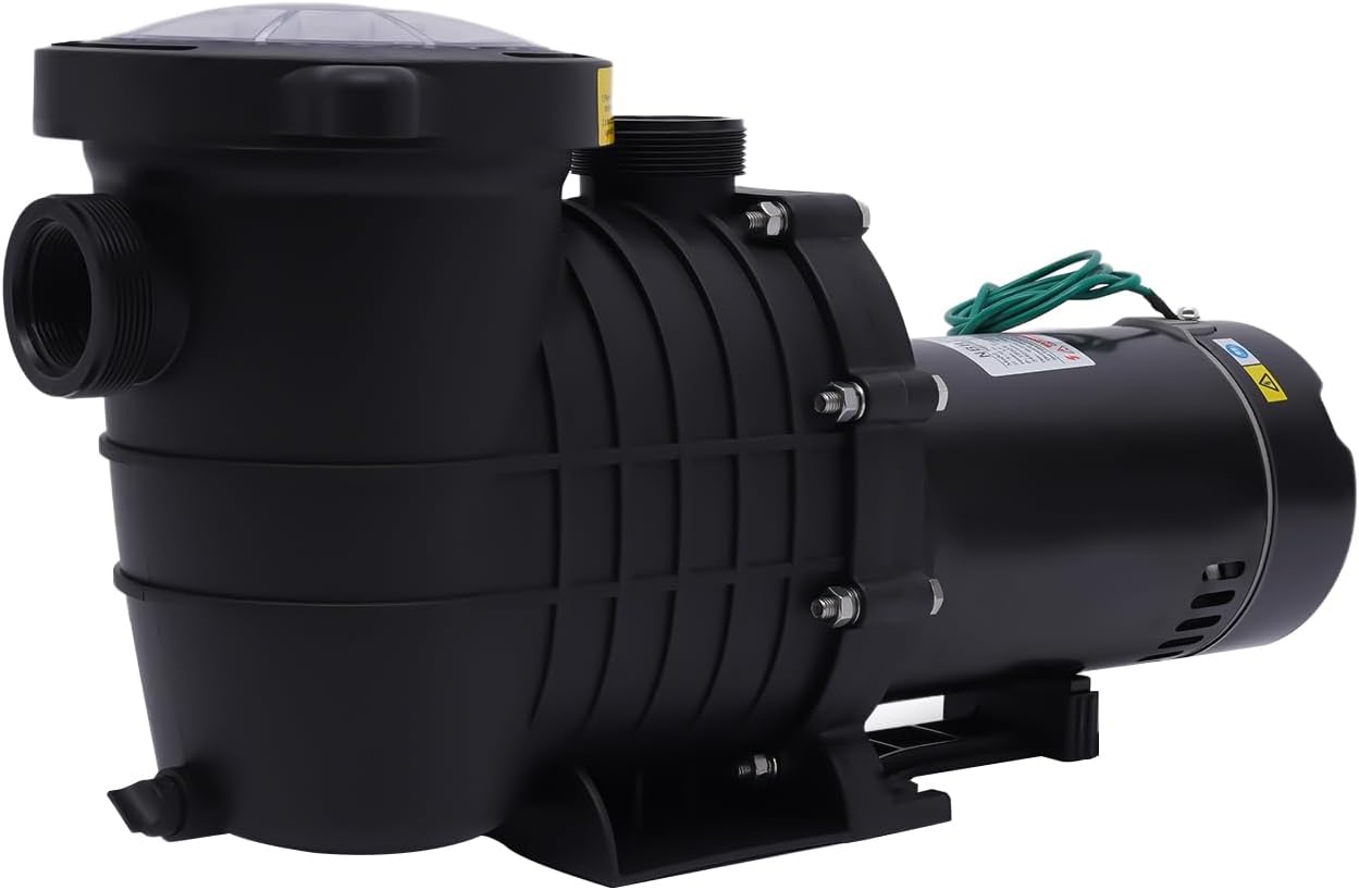 DescriptionThe pool water that looks clean on the surface hides a lot of debris. This pool pump with dual voltages (115/230V) offers a great solution. It can efficiently filter the circulating water and is suitable for various swimming pools, fish ponds, and spas. Application2hp pool pump is suitable for all types of swimming pools and spas, including underground and aboveground swimming pools, and hot springs.SpecificationModel: HBP1500ⅡColor: BlackMaterial: Iron, PPStyle: ModernVoltage: 115/230V, 60HzPower: 1500WCurrent: 12.3/6.1AHorsepower: 2HPPower Type: Plug-inMotor Type: Pure Copper MotorMaximum Flow: 430L/min (6815GPH)Maximum Lift: 17m/55ftRotation Speed: 3450rpmCAP: 124-148μFNoise: About 70dBSuitable Temperature: Max 50℃/122℉Net Weight: 12.5kg/27lbsGross Weight: 14kg/30lbsPackage Size: 62*24.5*35cm/24*9.6*13inchPackage Included1* Dual Voltage Pool Pump4 * Connectors1* English ManualOther Accessories for AssemblyNotes1.Please fill the pump with water before use to prevent the motor from overheating.2.Please read the manual completely before installation and use, and pay particular attention to the safety instructions included. 3.Please allow the slight color difference caused by the shooting light and 1-3cm error due to manual measurement, and make sure you do not mind before ordering.
