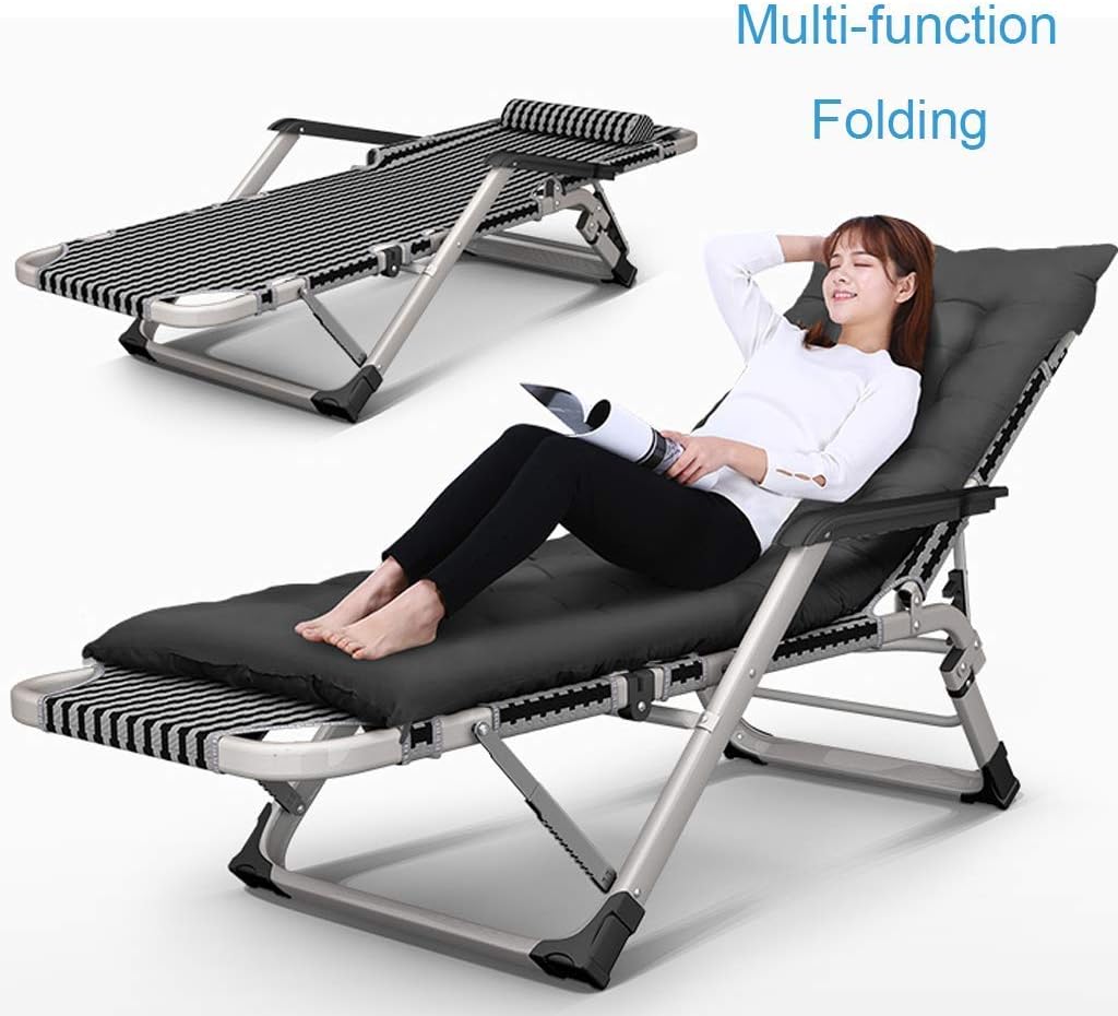 Specifications: Material: Iron alloy tube Frame + textilene fabric MAX Loading Capacity: 200 kg (441lbs) Size: Open Dimension: 178cm × 52cm × 25cm (Length 70.1" x Width 20.5"x Height 9.8") Folding size : 67cm × 18cm × 97cm (Length 26.7" x Width 7.1"x Height 38.2") Feature: Foldable for easy storage Sturdy steel frame with detachable soft padded cushion and head pillows Comfortable Curved Ergonomic Reclining Design Unique locking design for sitting or reclining. Cleaning and Maintenance: In order to avoid steel frame from rusting, please do not use them in rough conditions for long time, such as scorching sun, rainy day and humid environment in order to extended service life Store away after drying when not in use. Check stability regularly. Screws may loosen and need to be tightened.